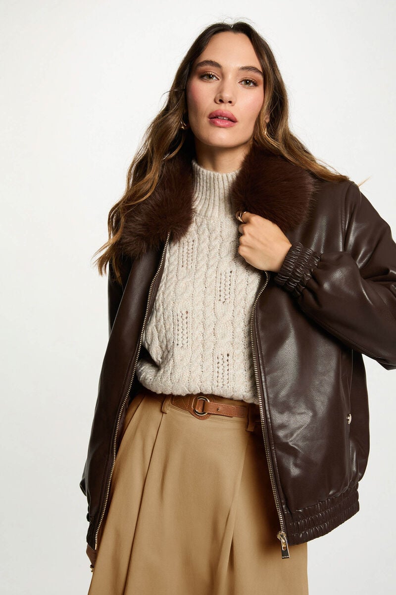 Blusão castanho gola de pêlo Morgan