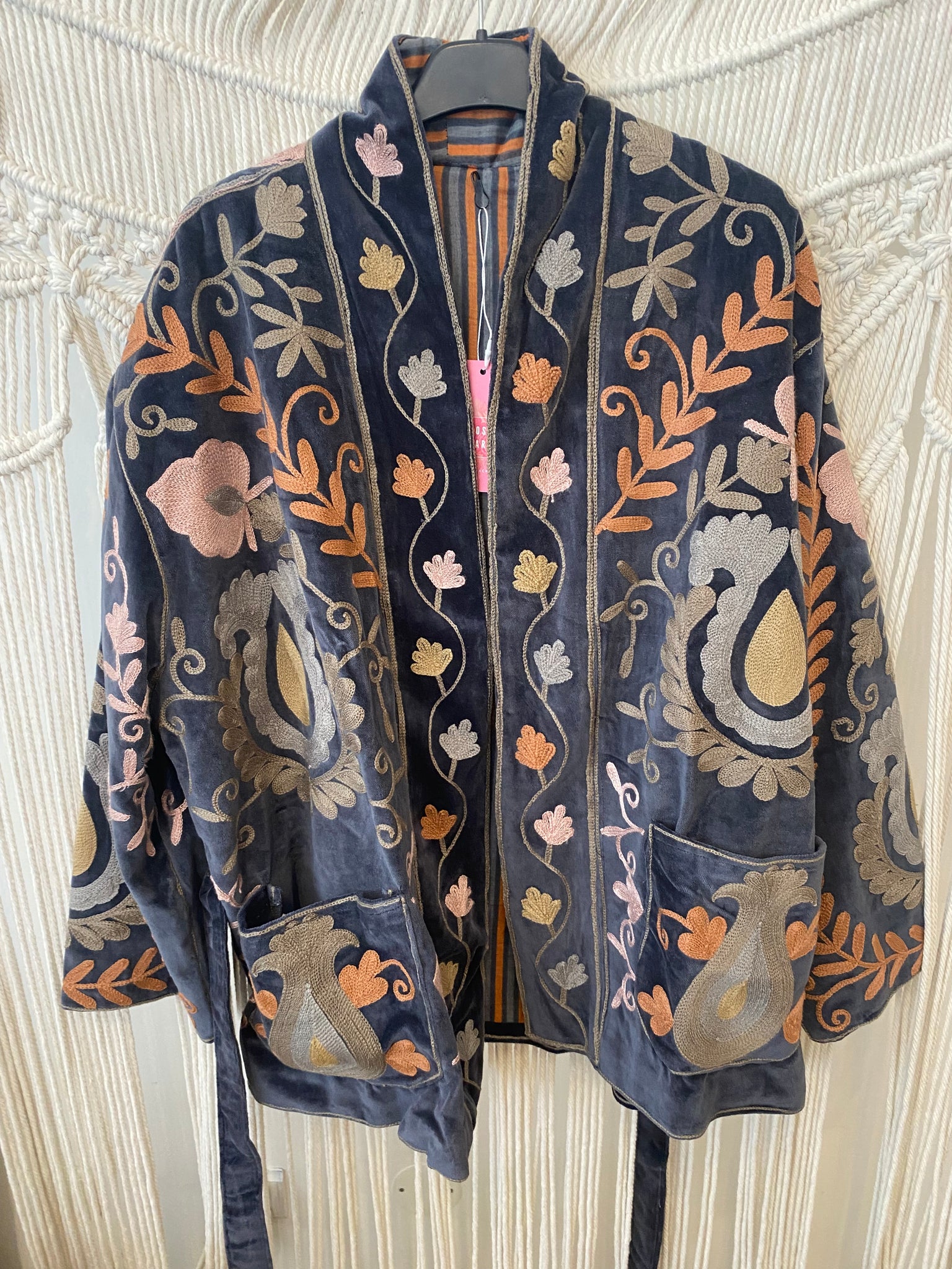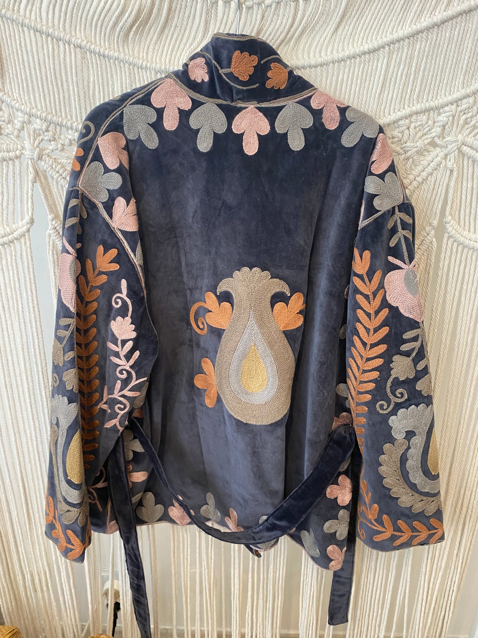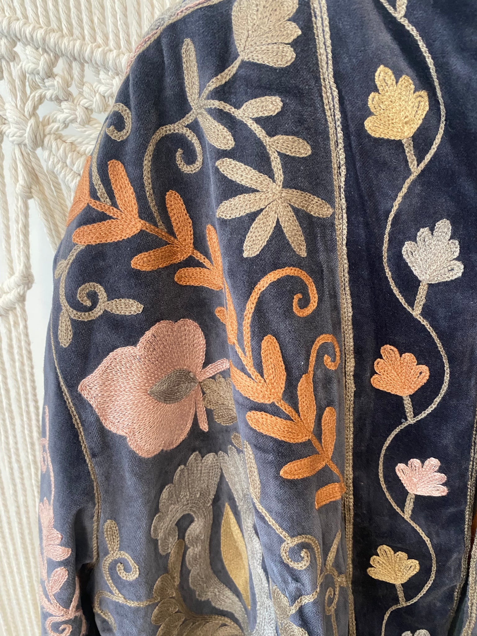 • Carregar imagem no visualizador da galeria, Casaco de veludo bordado azul