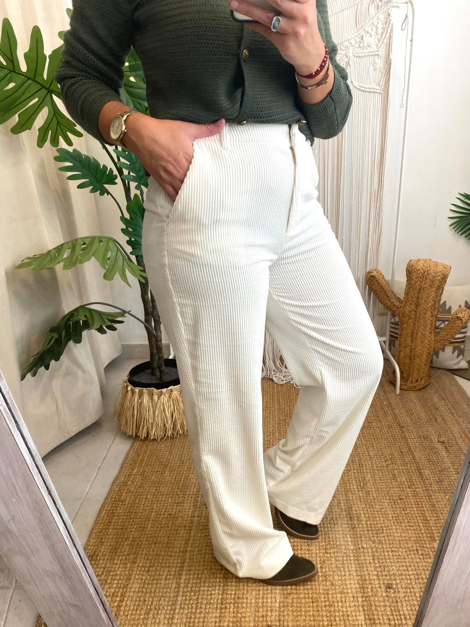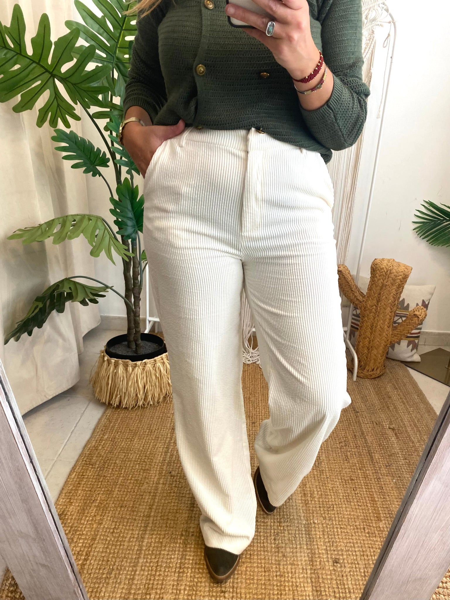 Calças bombazina pérola Morgan