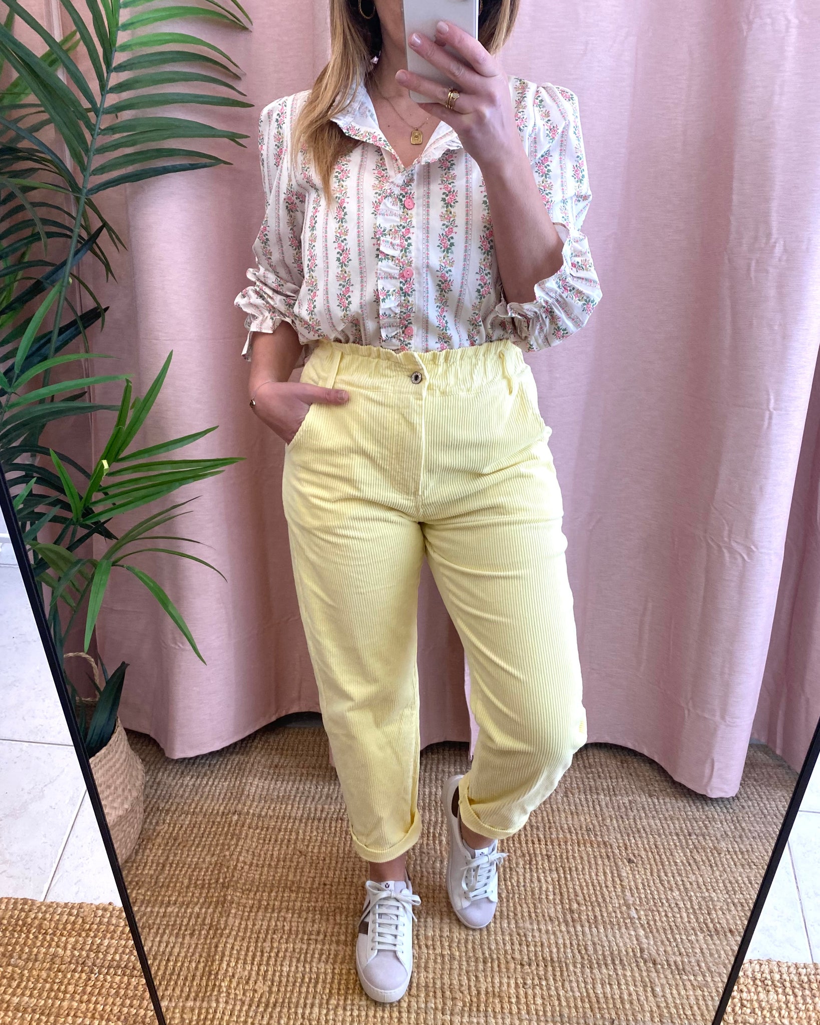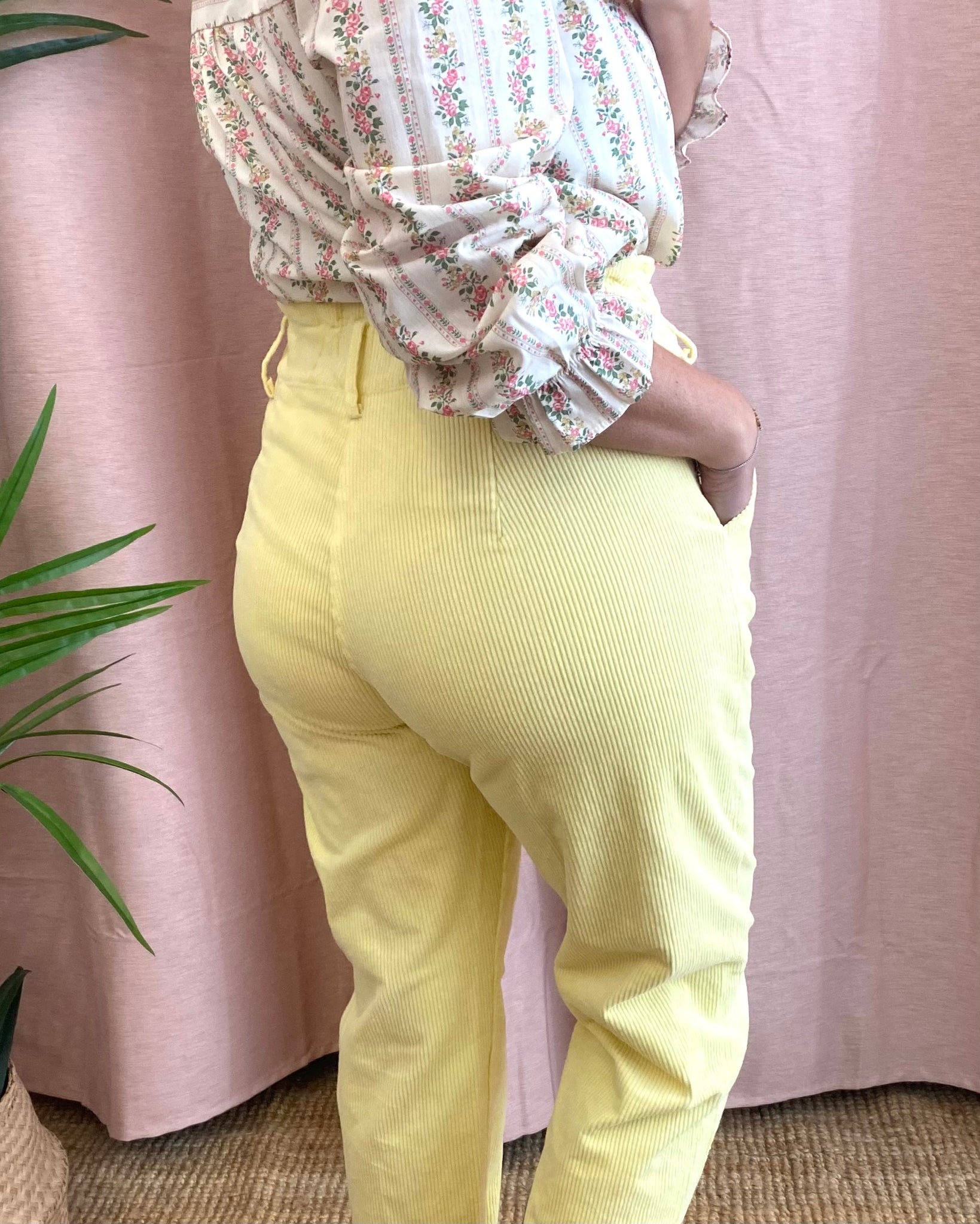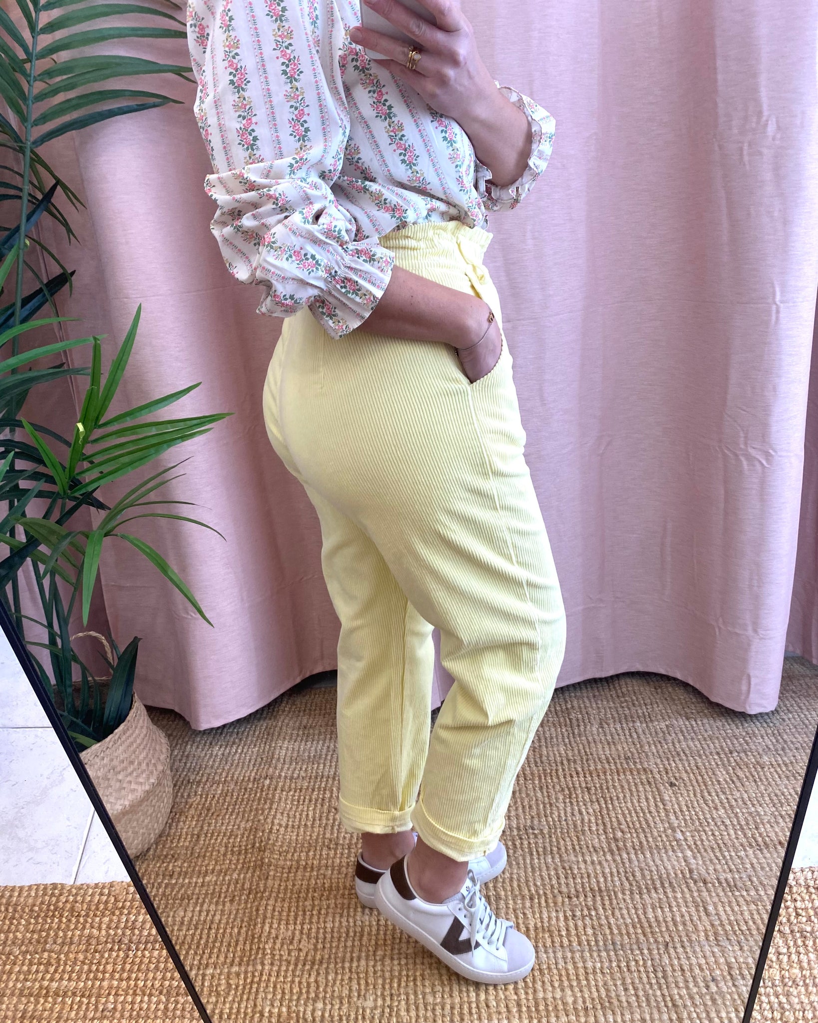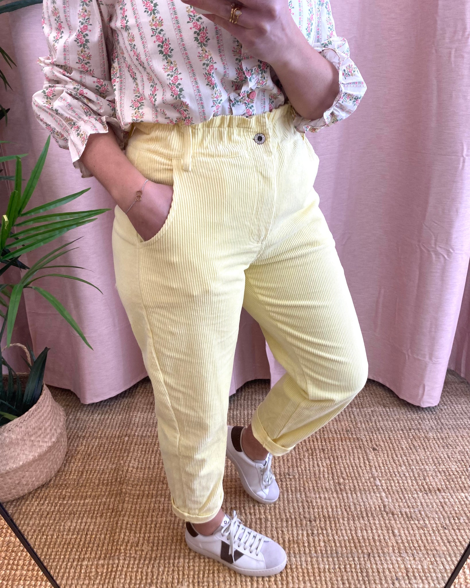 Calças de bombazina com elástico na cintura, composição: 98%algodão, 2%elastano