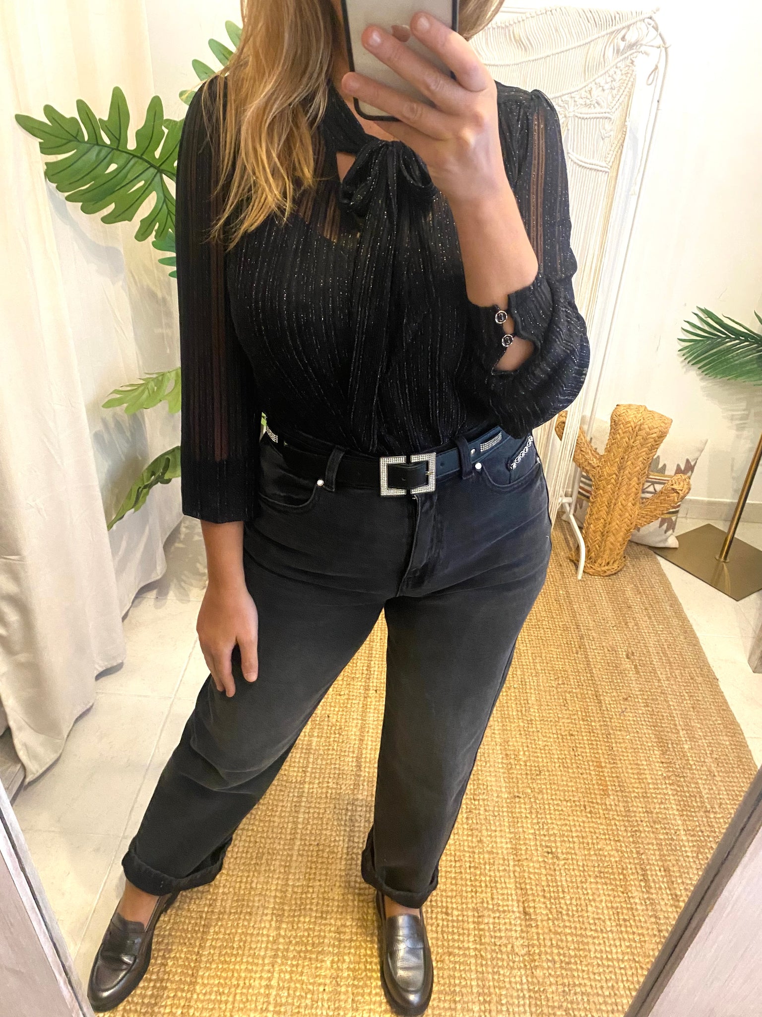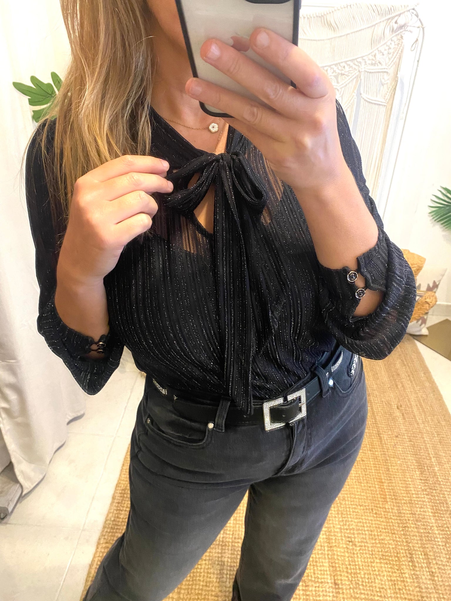 Blusa com laçada preto Morgan