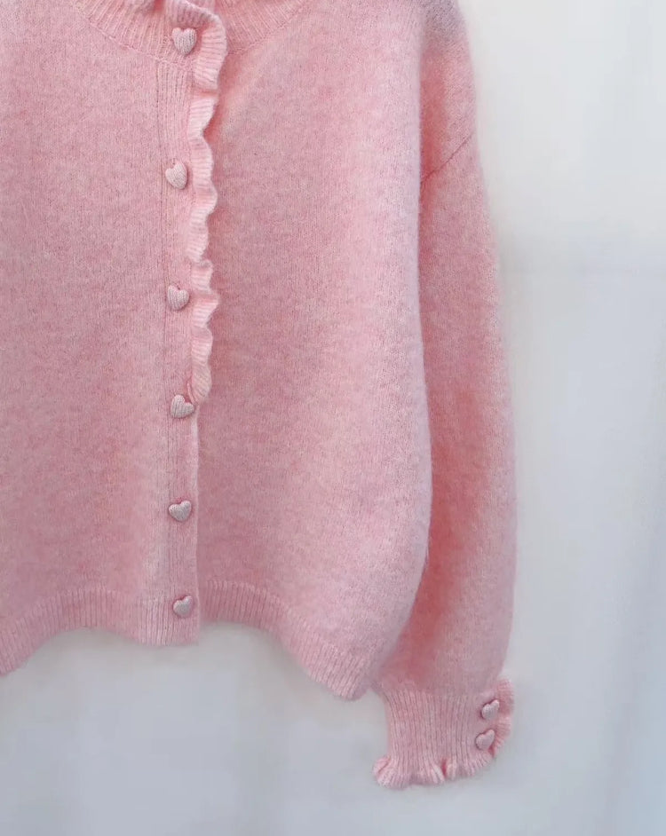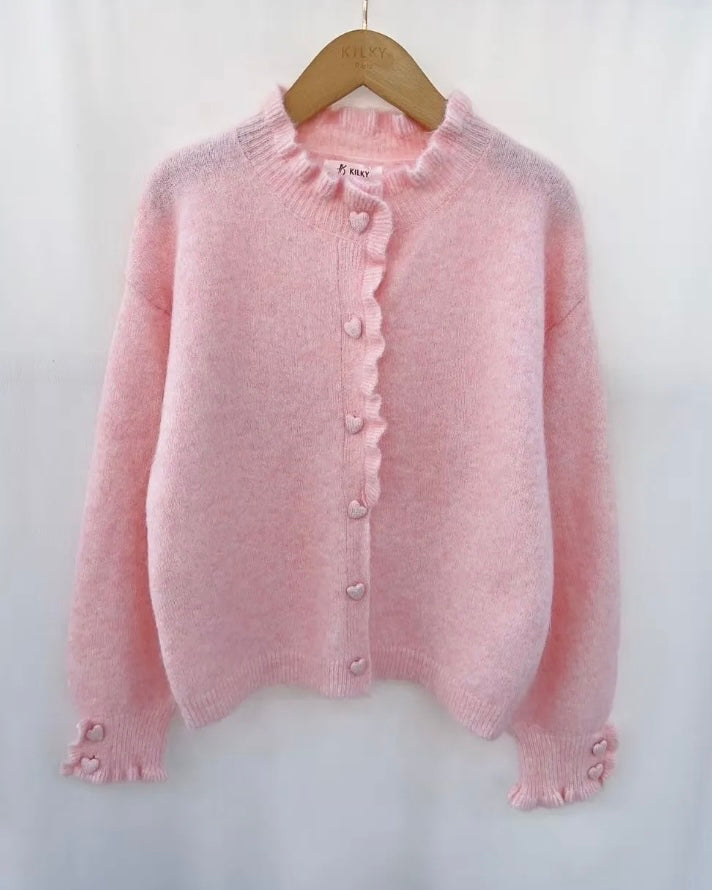 Casaco de malha com botões coração , composição: 2% elastano 18% lã 22% poliamida 58% poliester reciclado , tamanho único