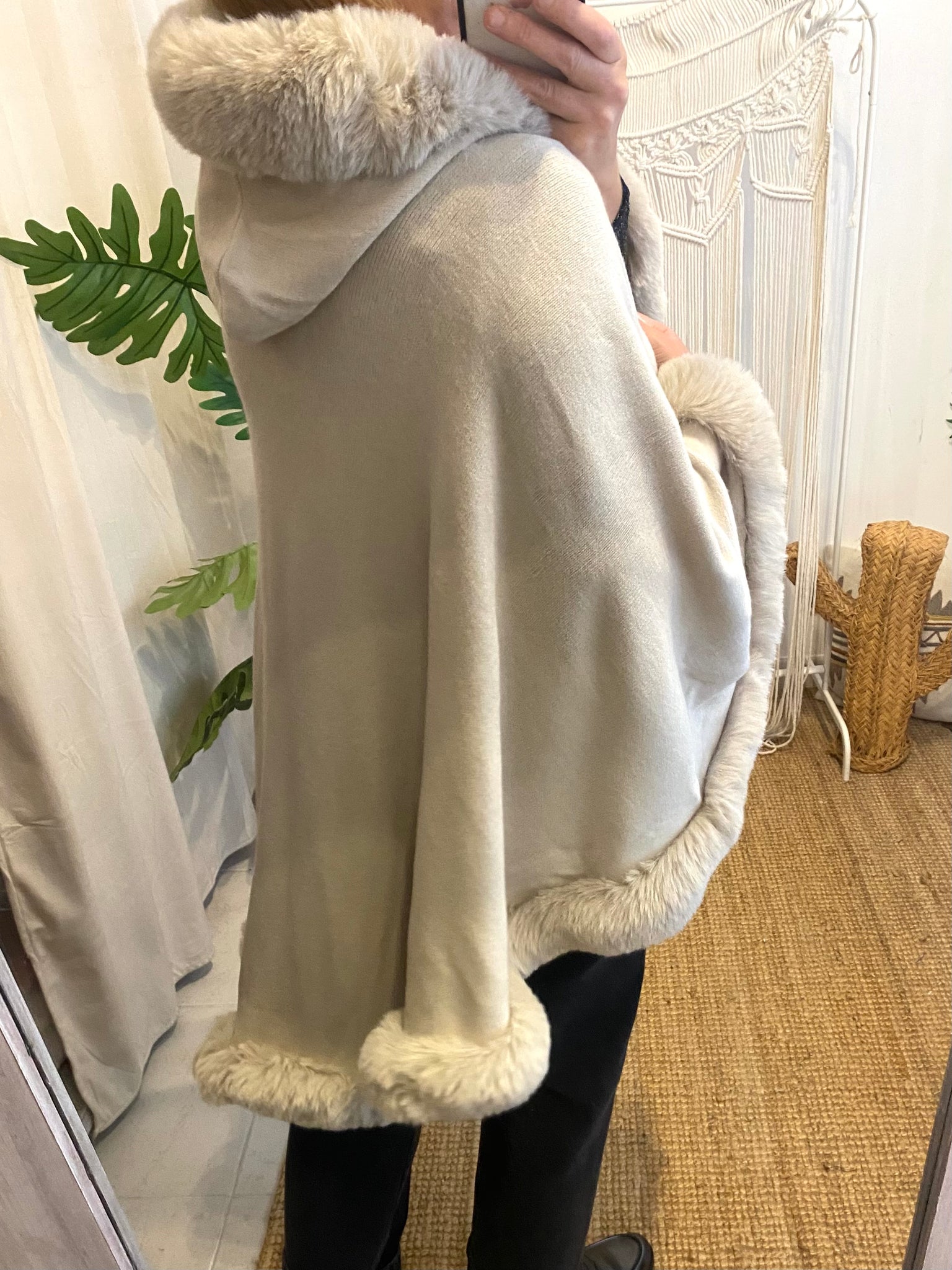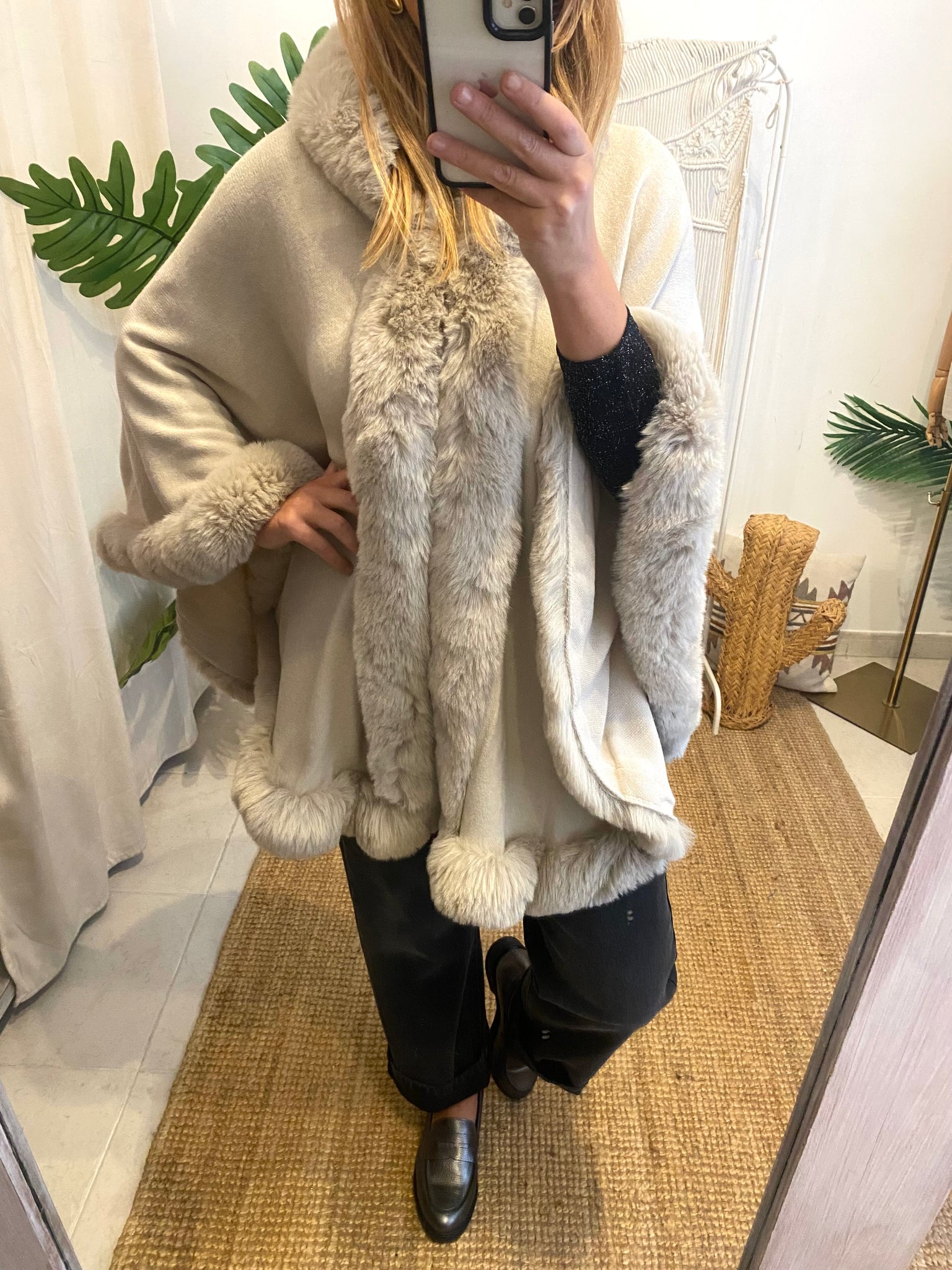 Poncho de malha com pêlo Morgan