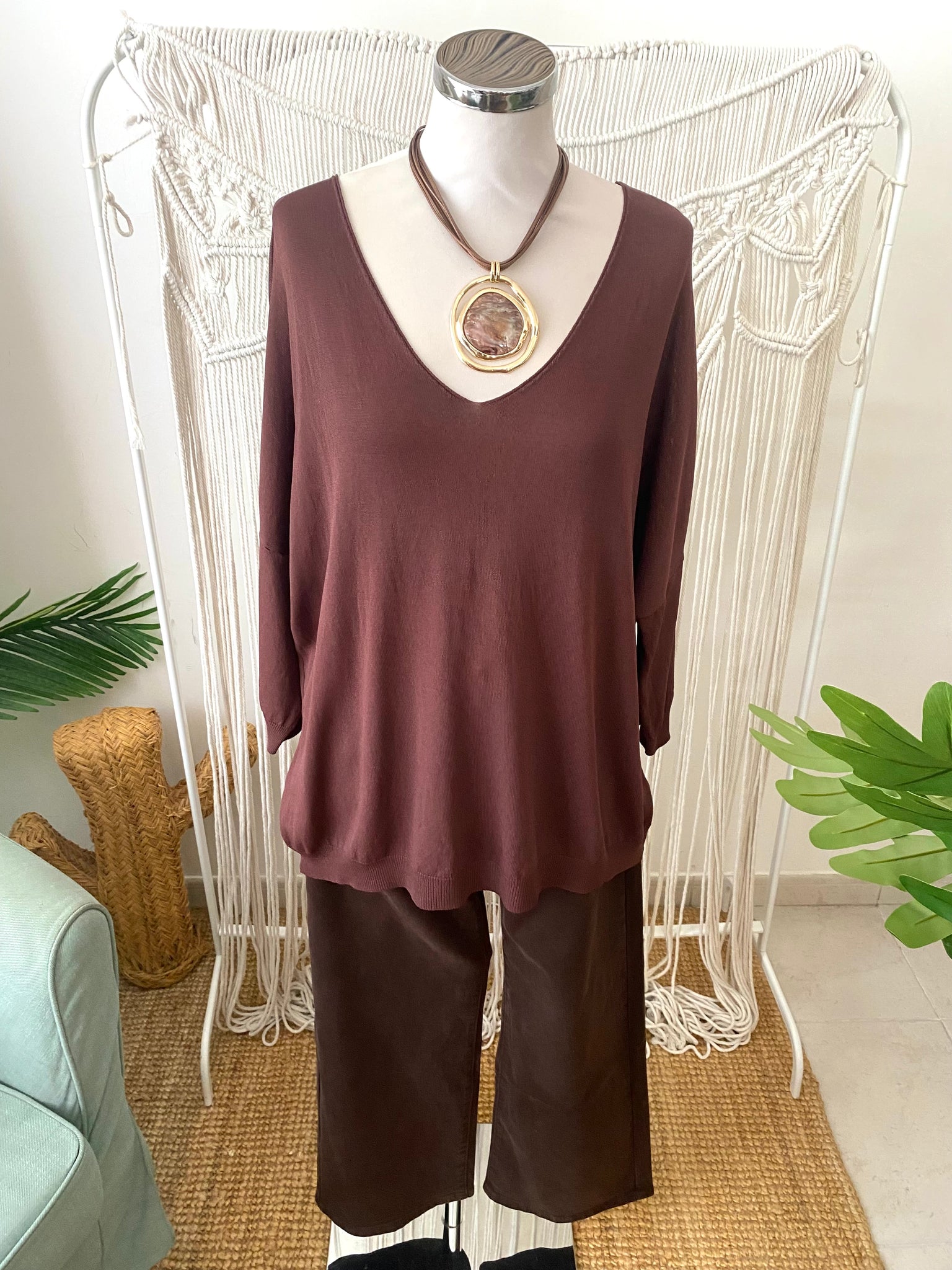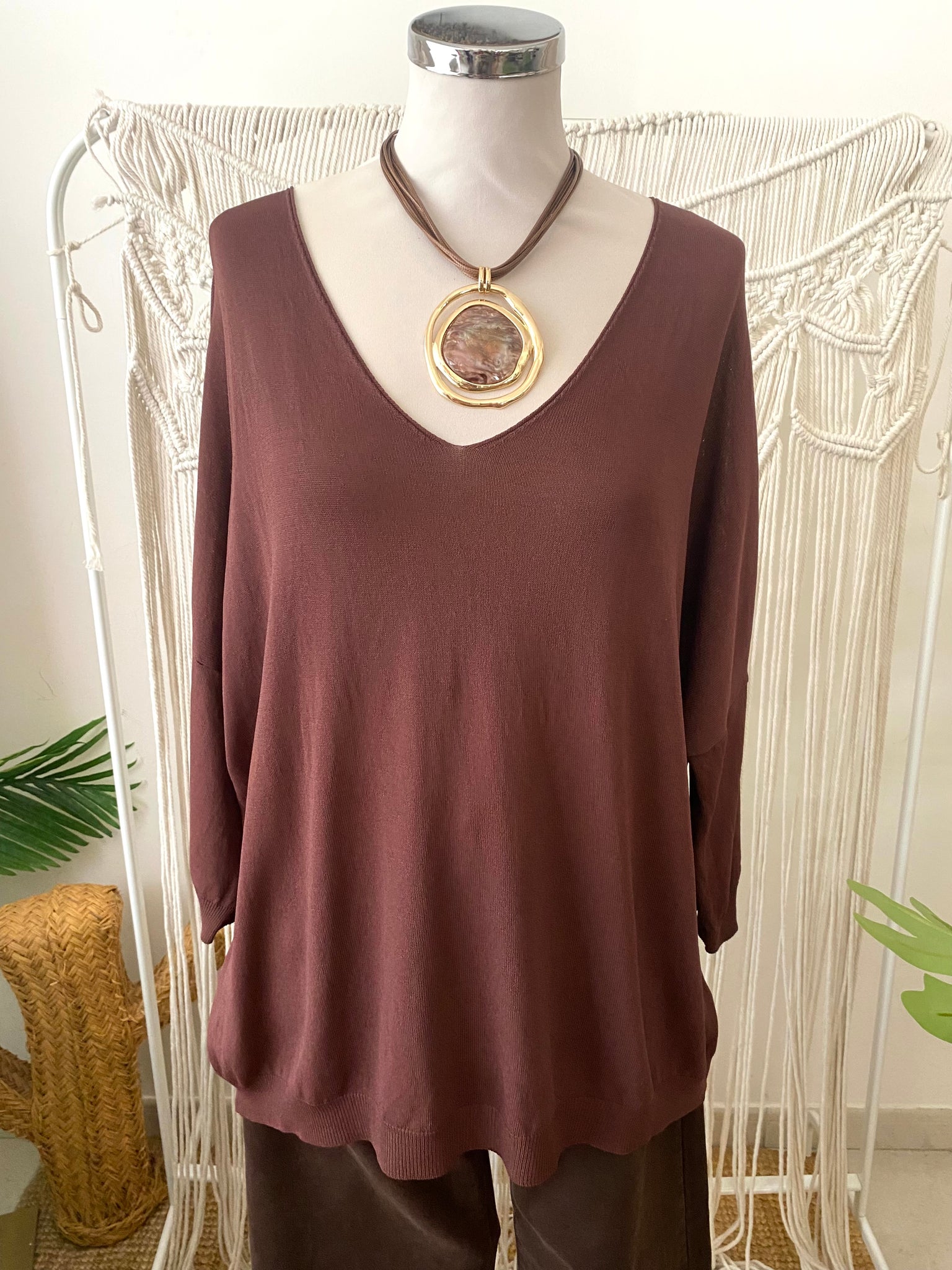 • Carregar imagem no visualizador da galeria, Camisola de malha fina oversize marrom