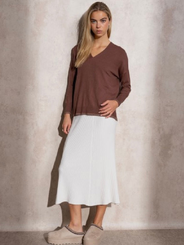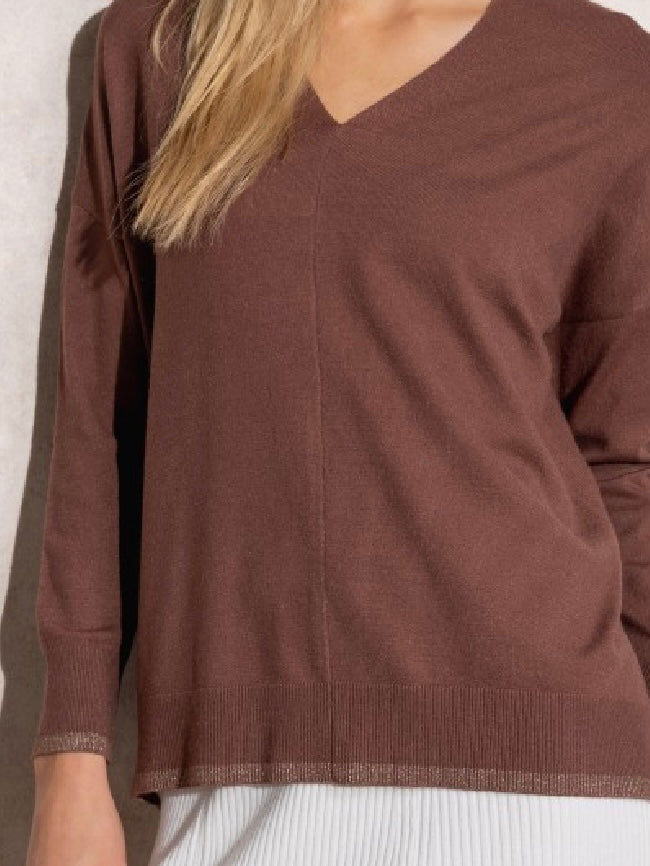 Camisola de malha fininha castanho Smf