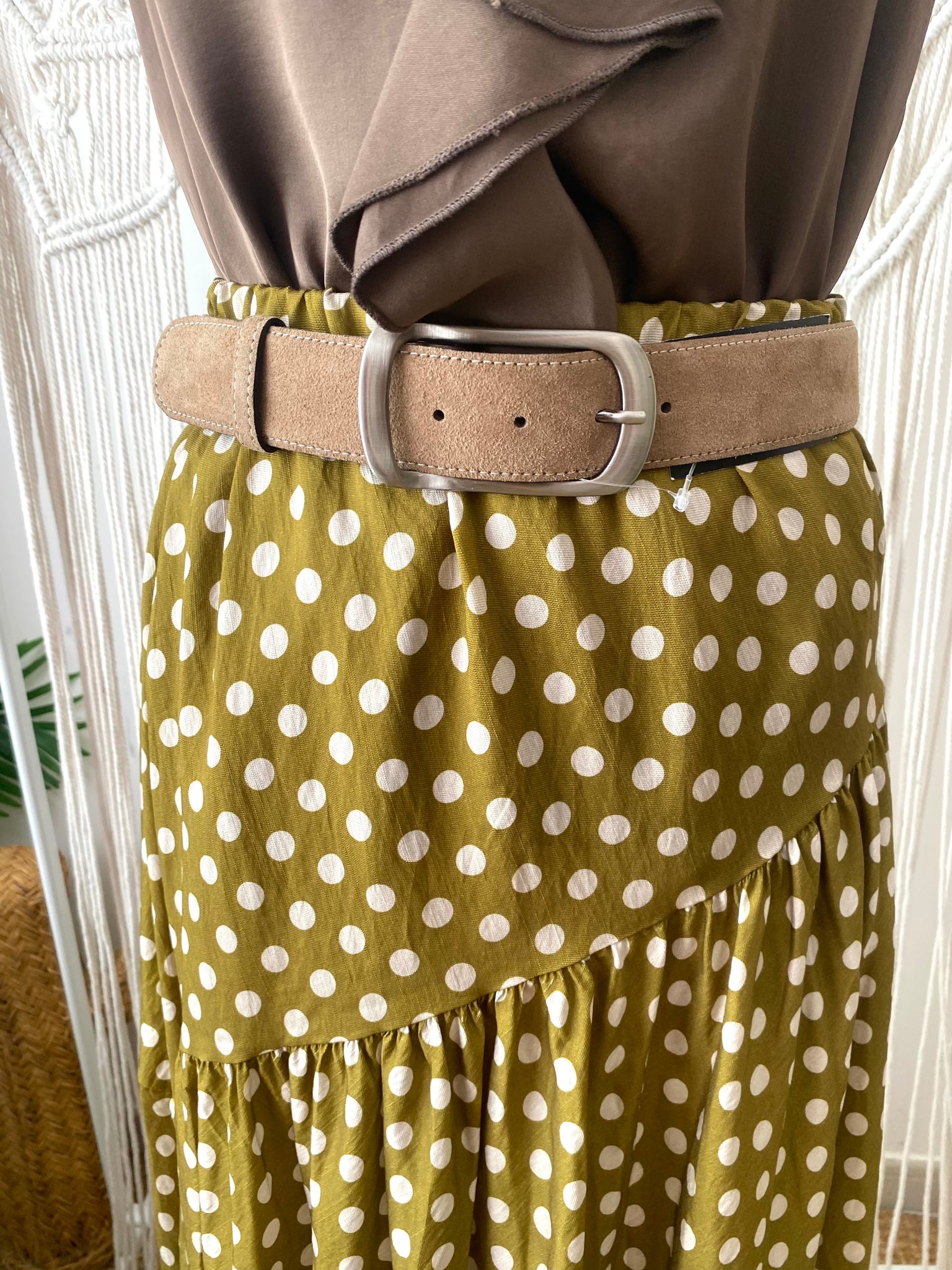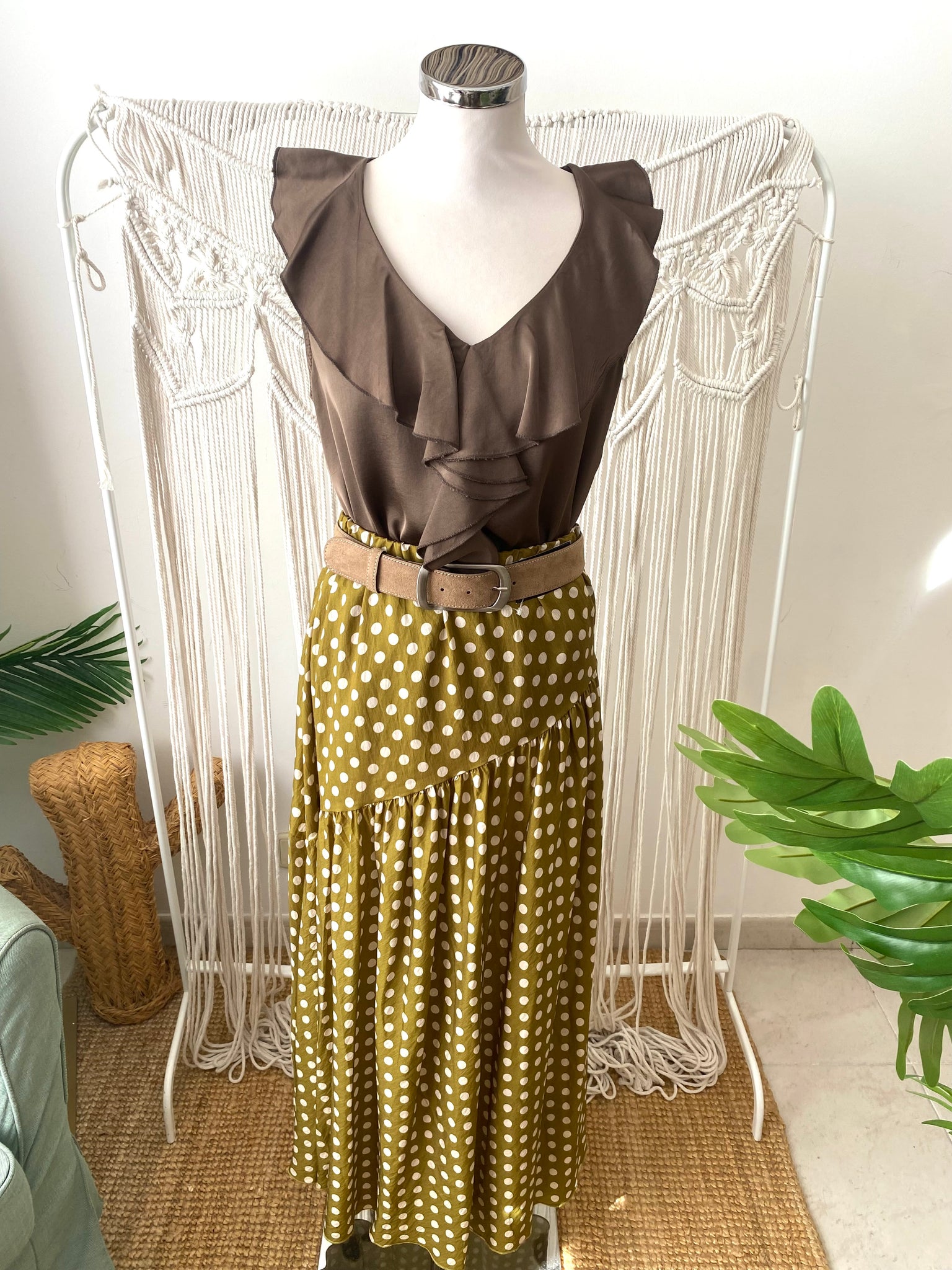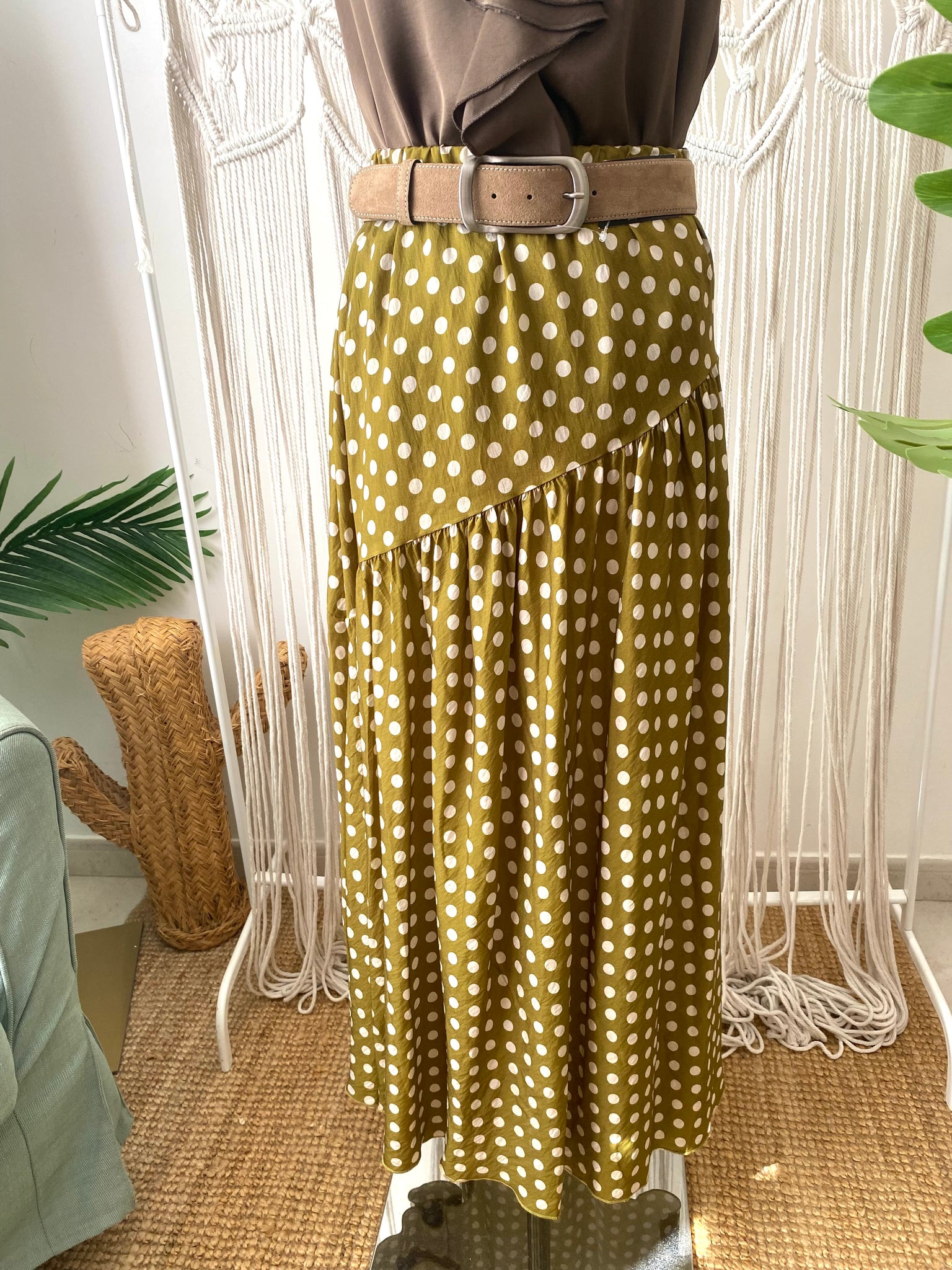 • Carregar imagem no visualizador da galeria, Saia comprida bolinhas verde oliva