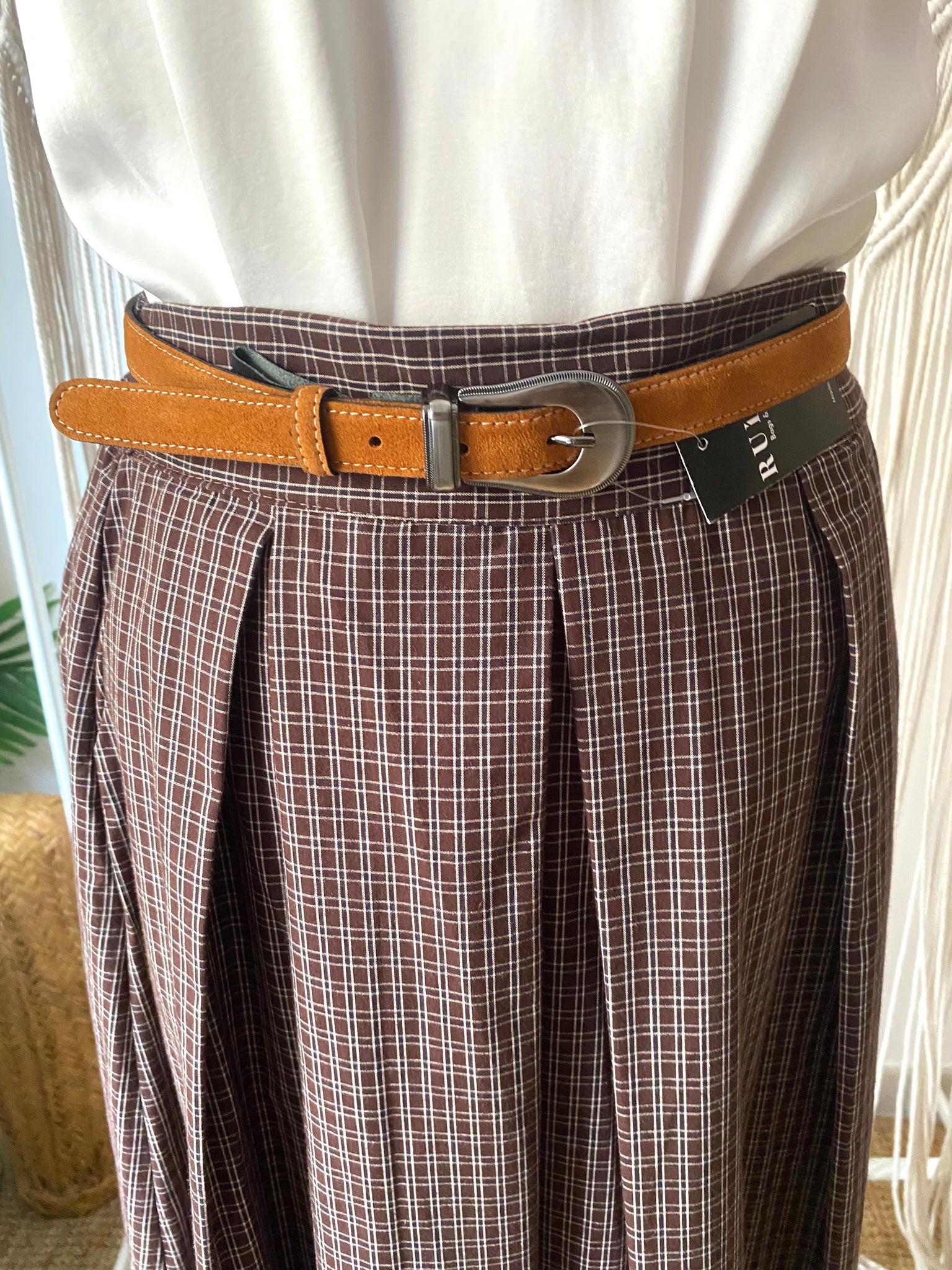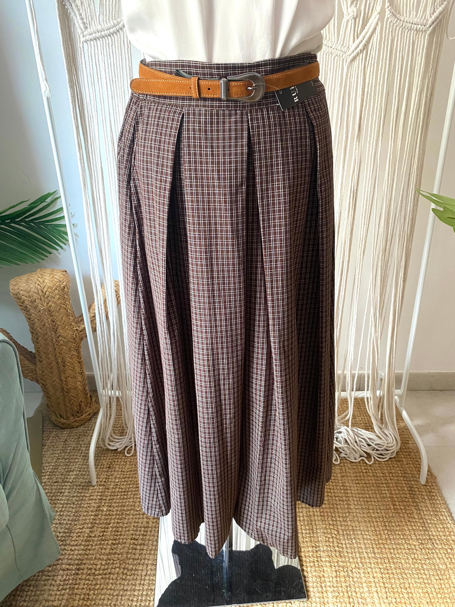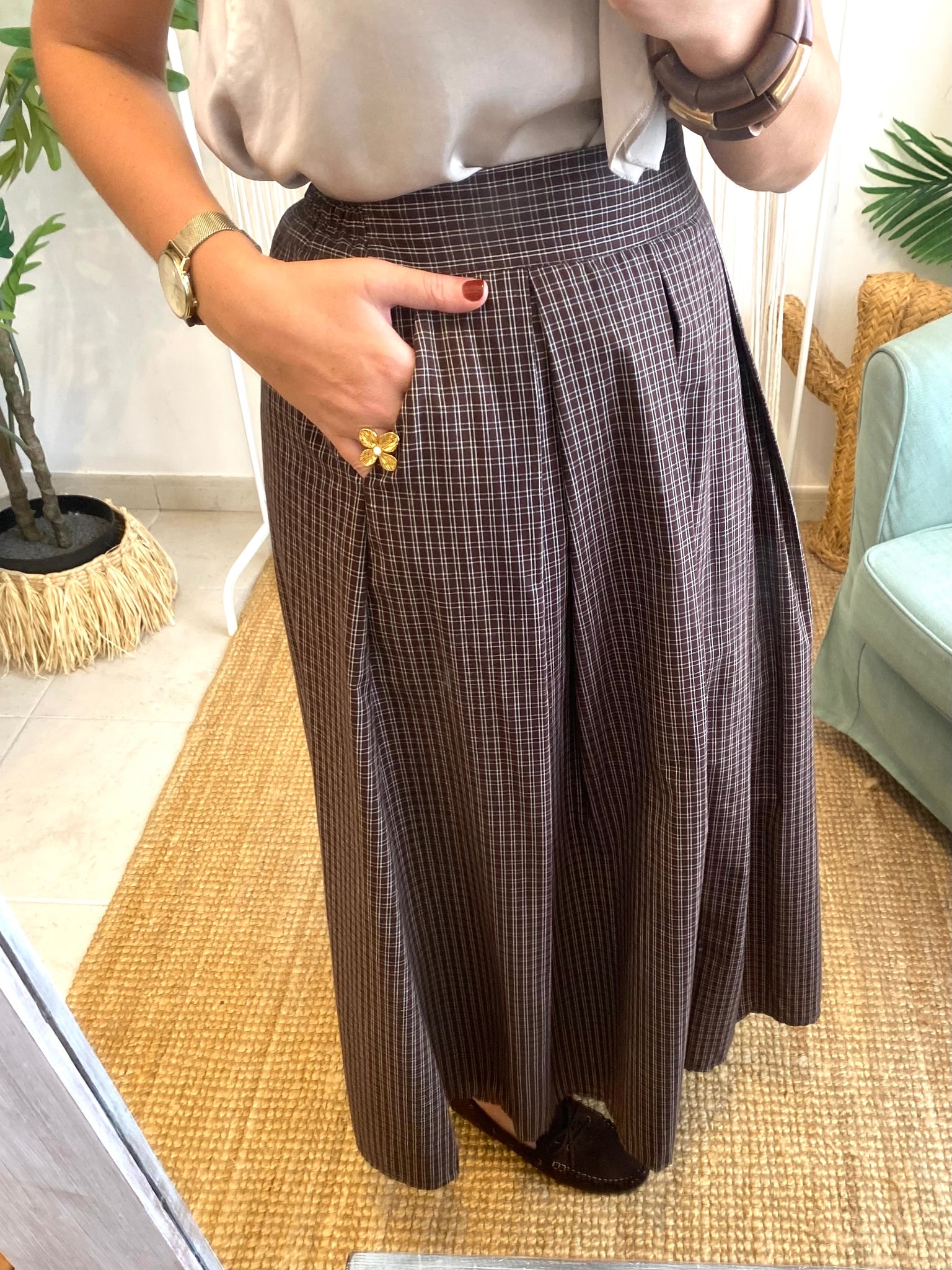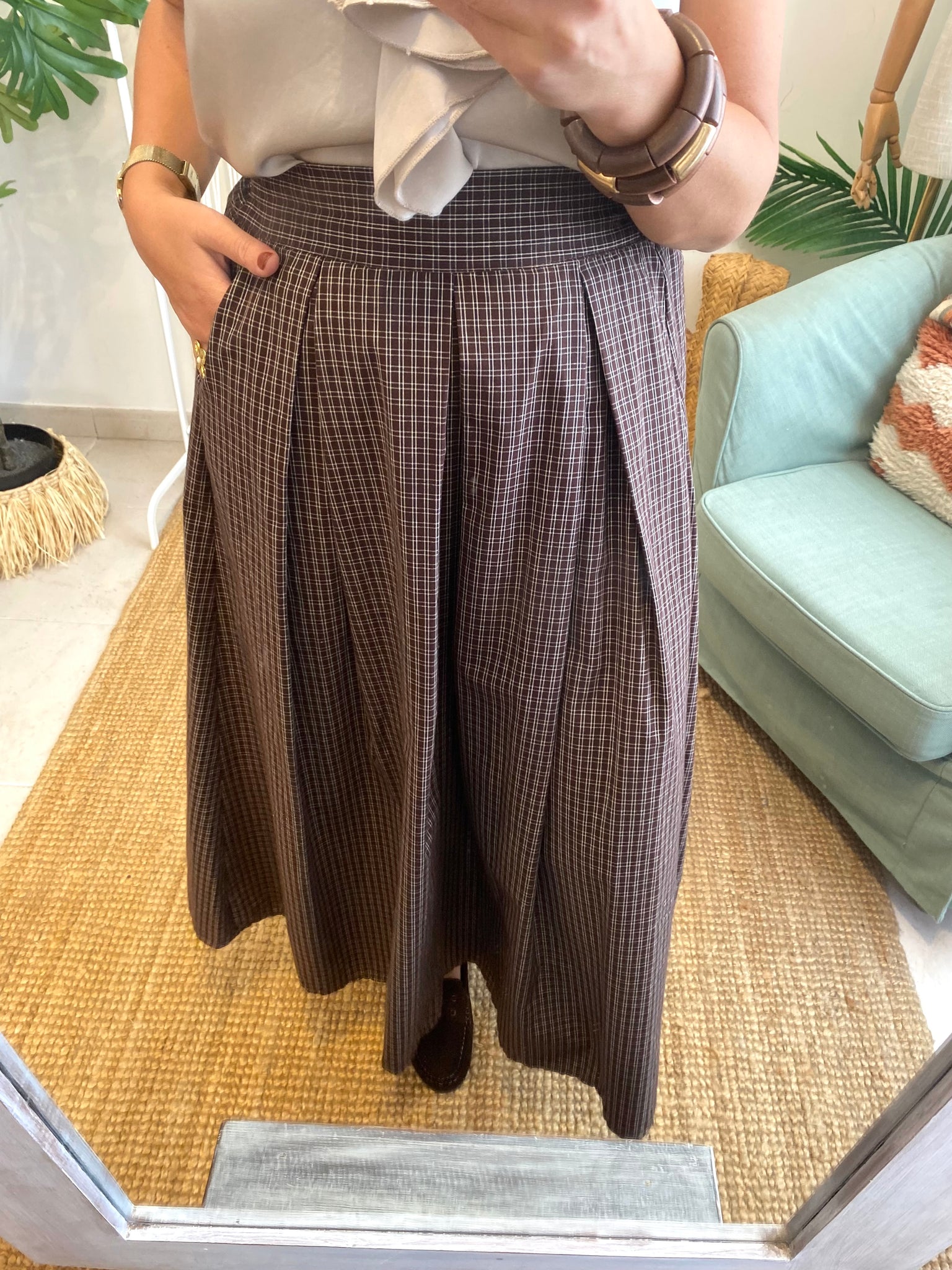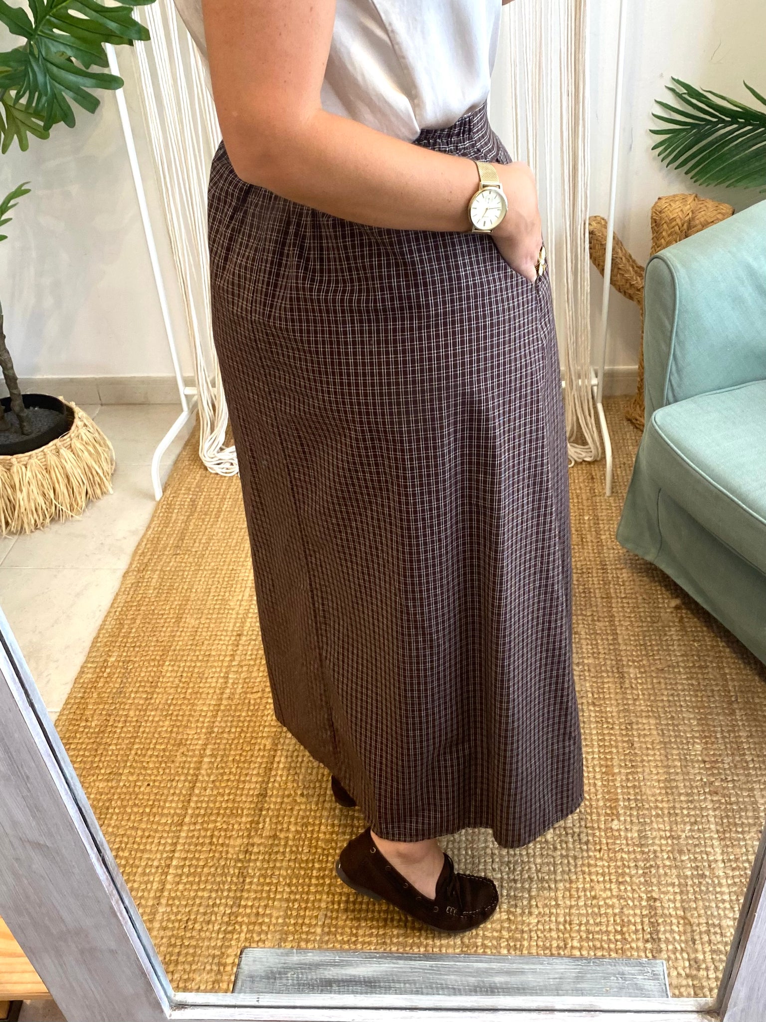 Saia midi quadradinhos castanho