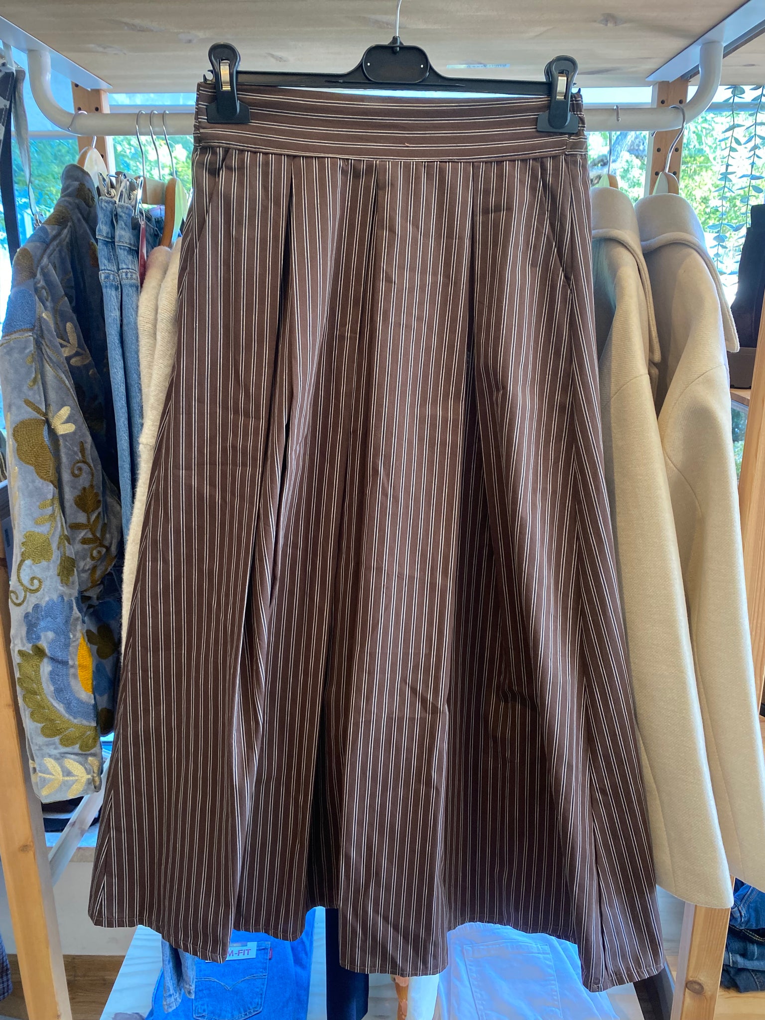 • Carregar imagem no visualizador da galeria, Saia midi riscas castanho