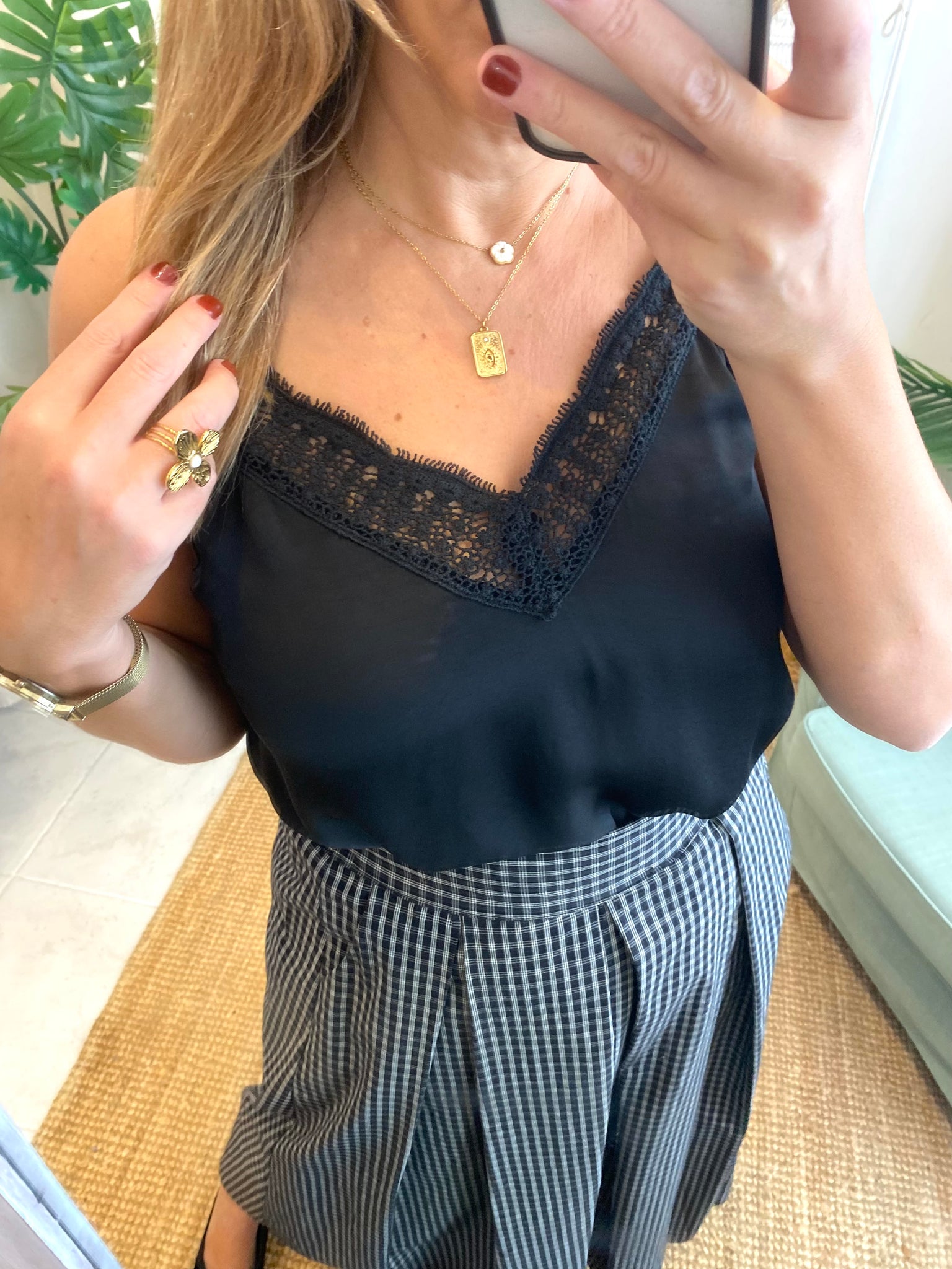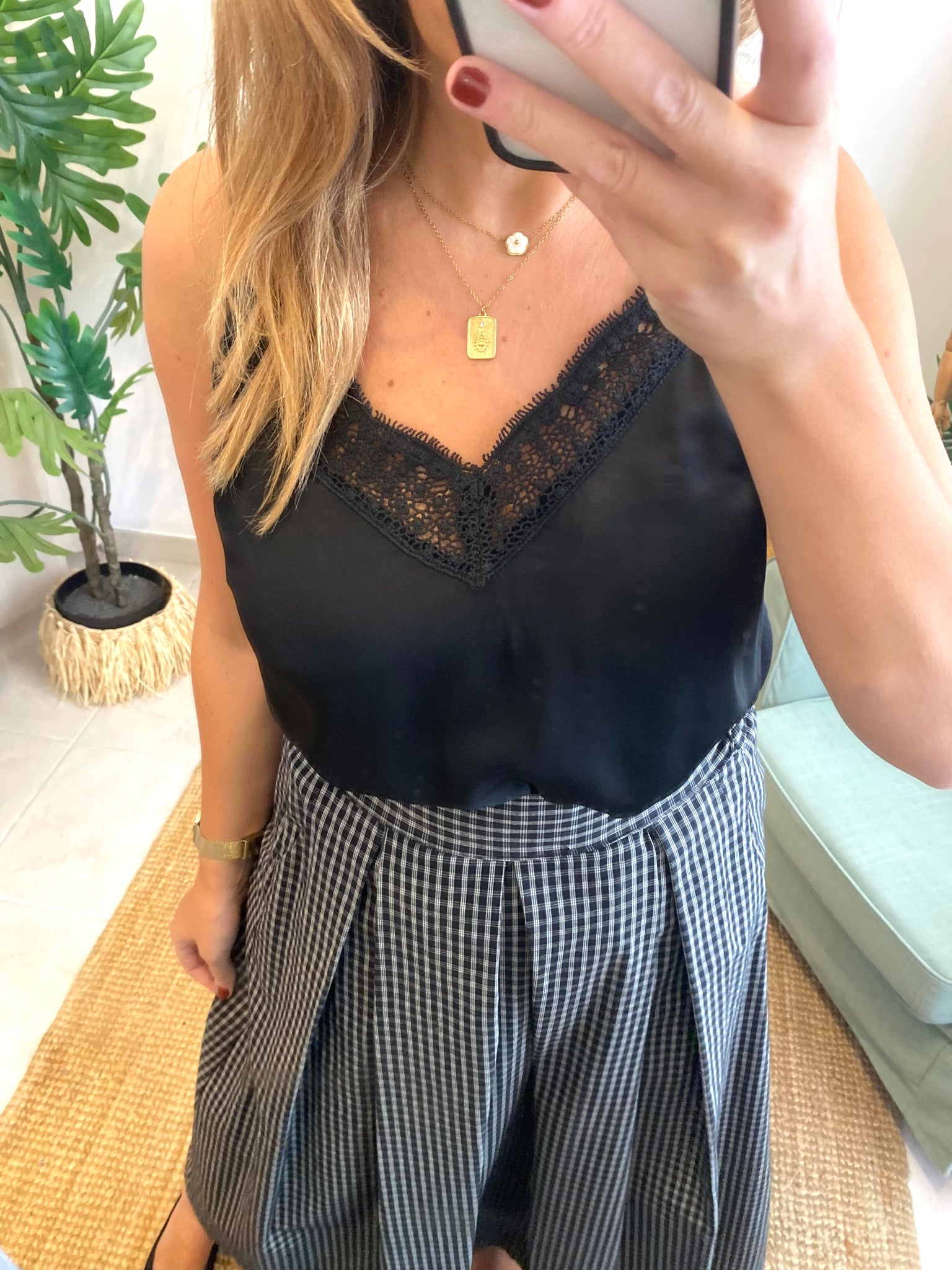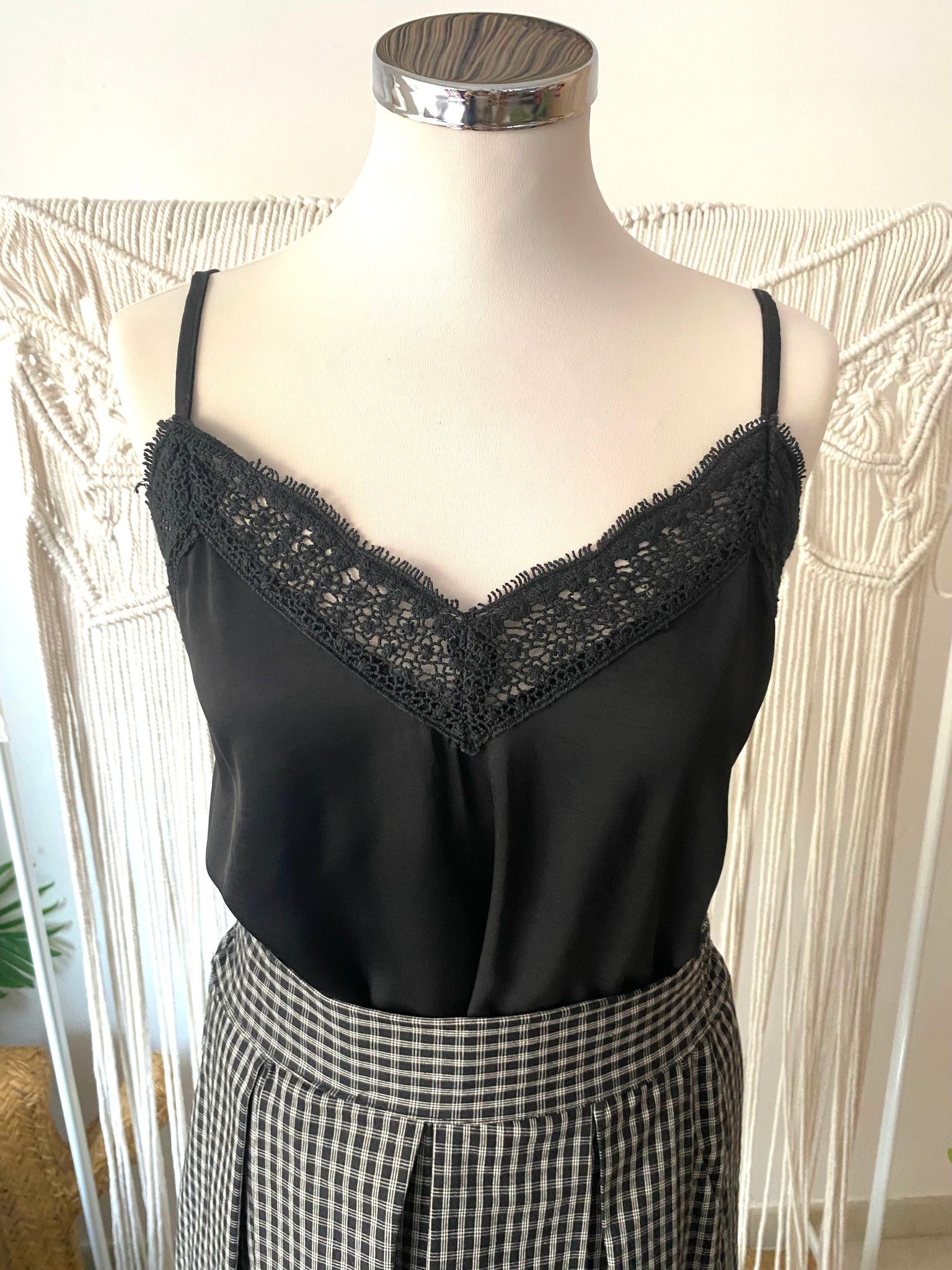 Top alças com renda preto