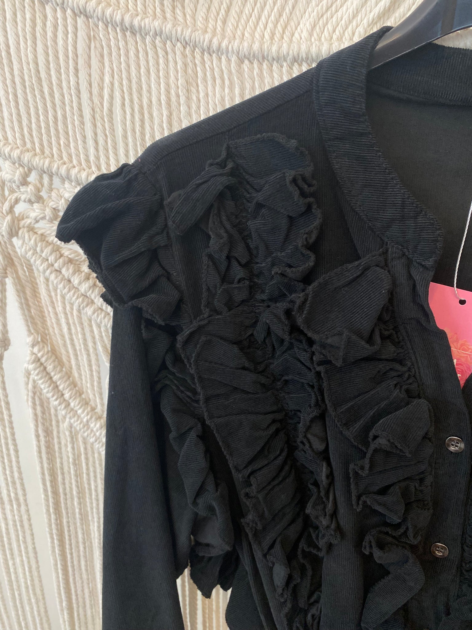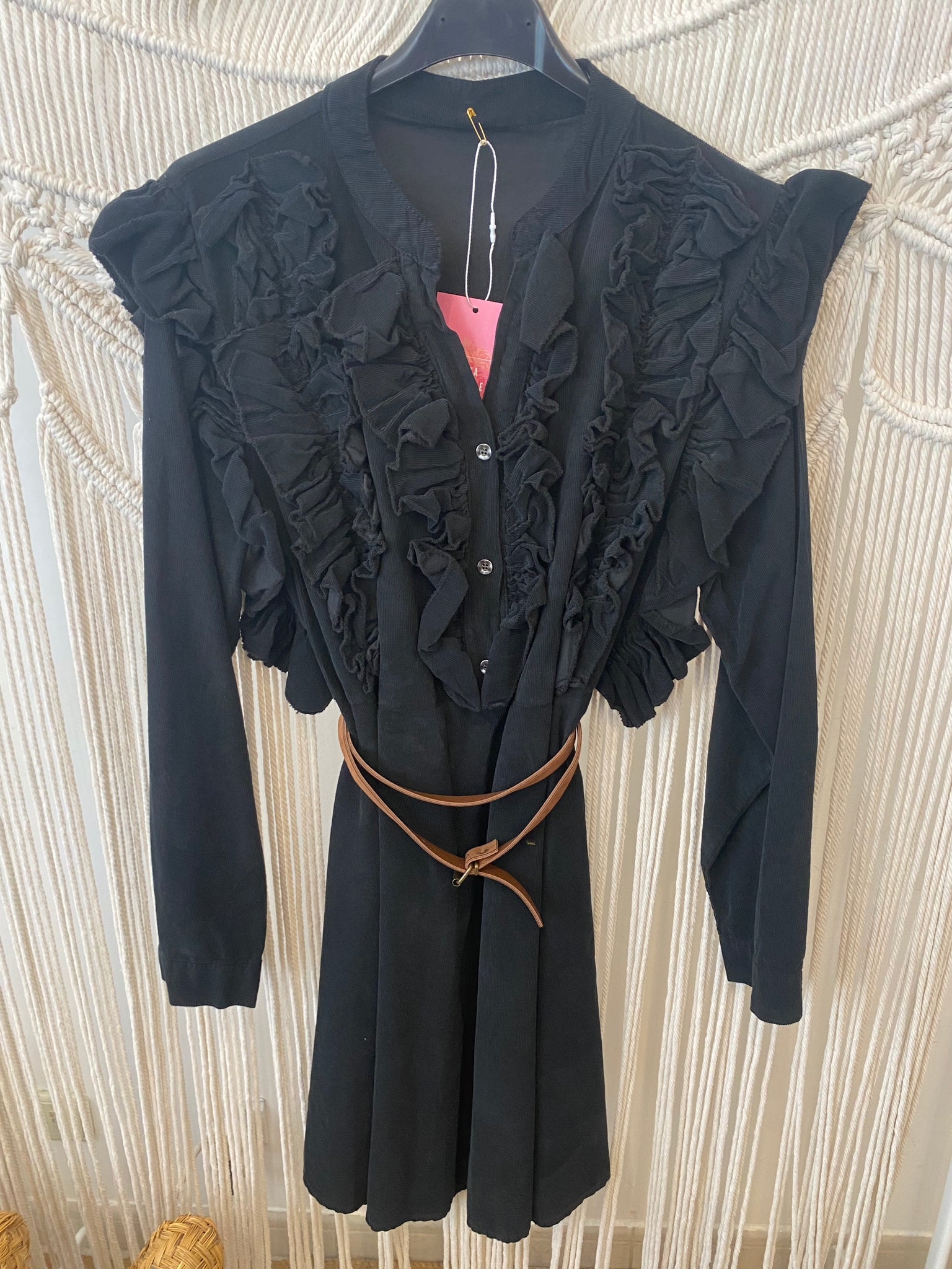 • Carregar imagem no visualizador da galeria, Vestido bombazina folhos c/cinto preto