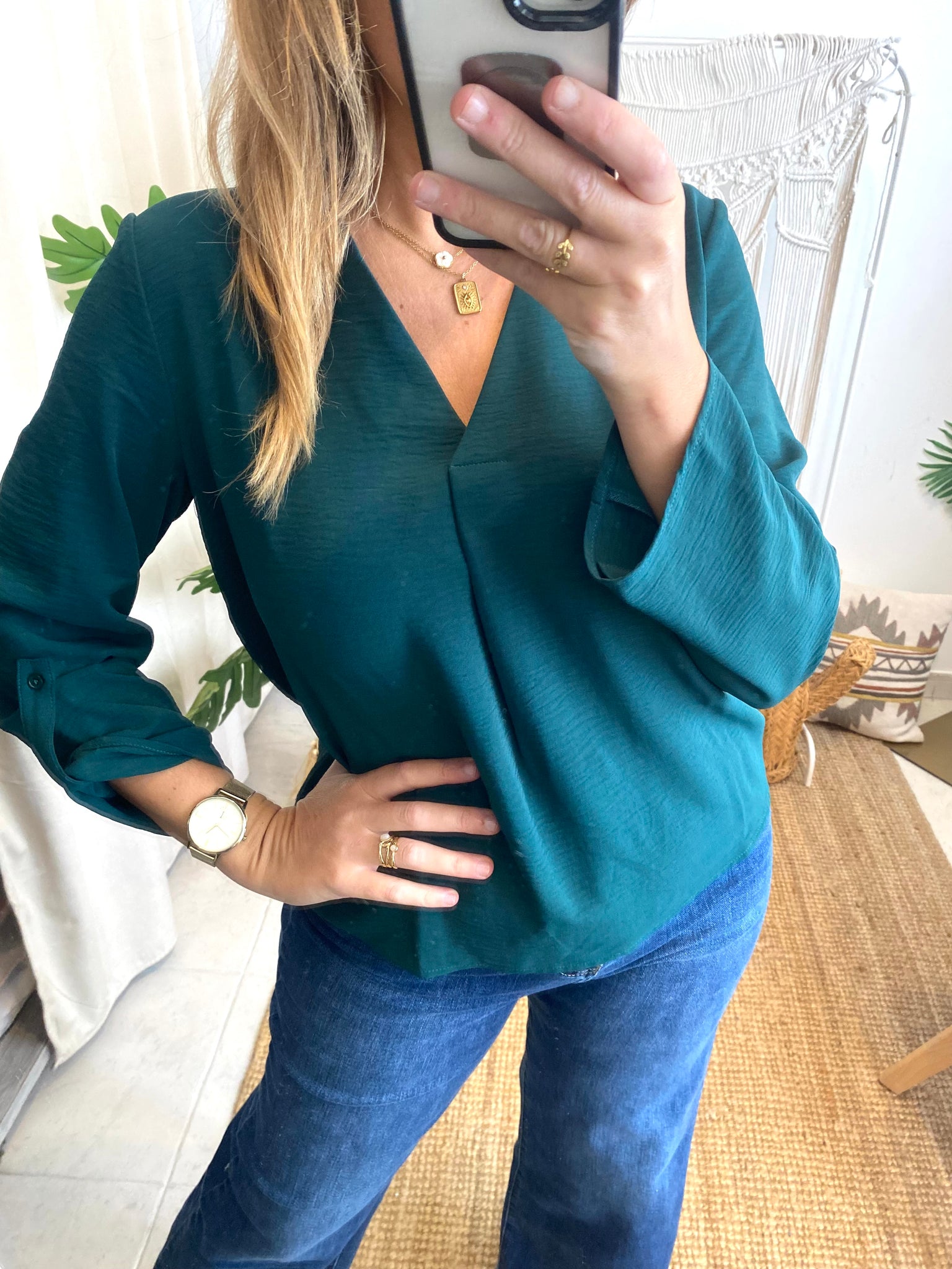 Blusa vijosa v neck verde Vila