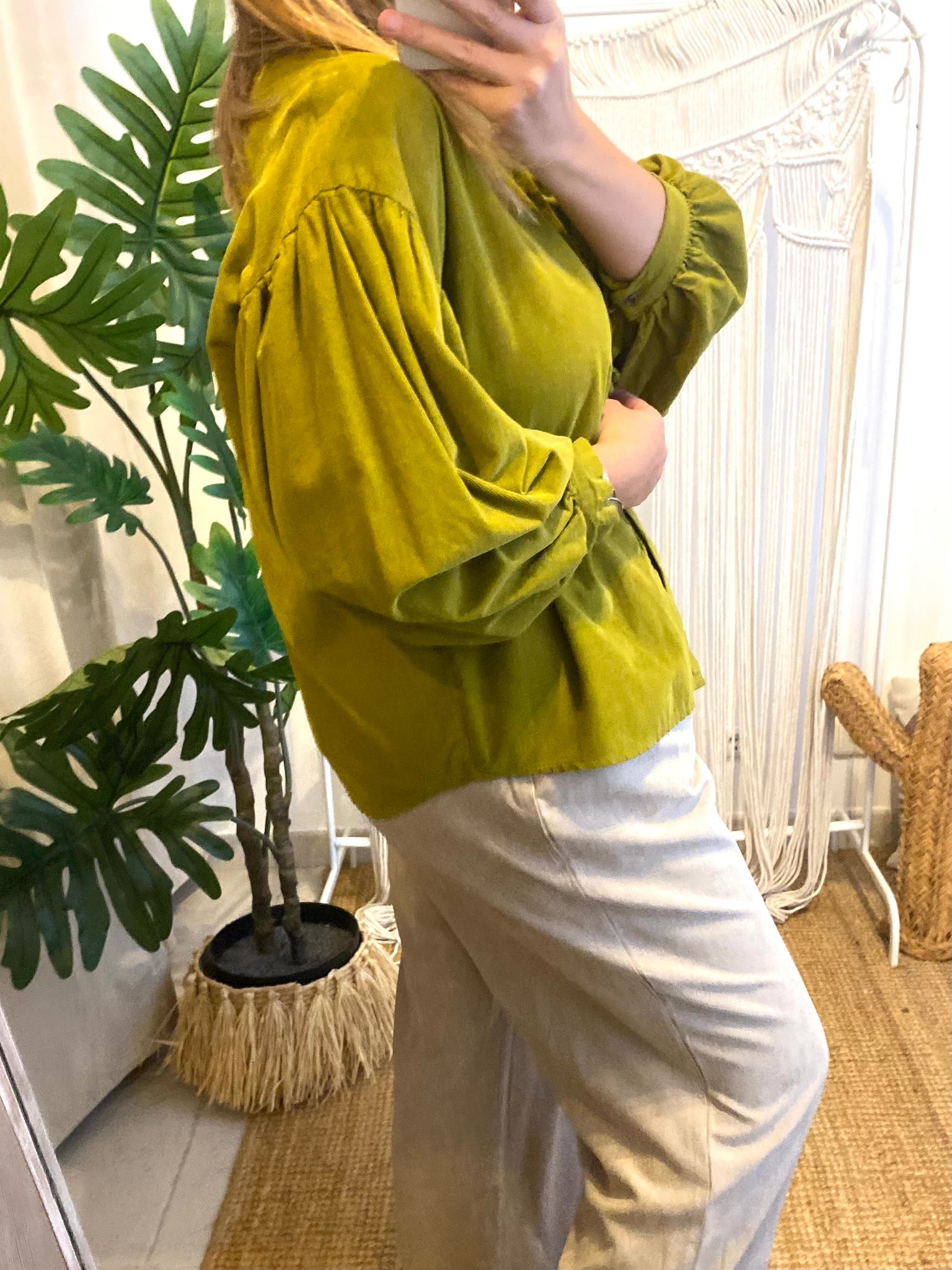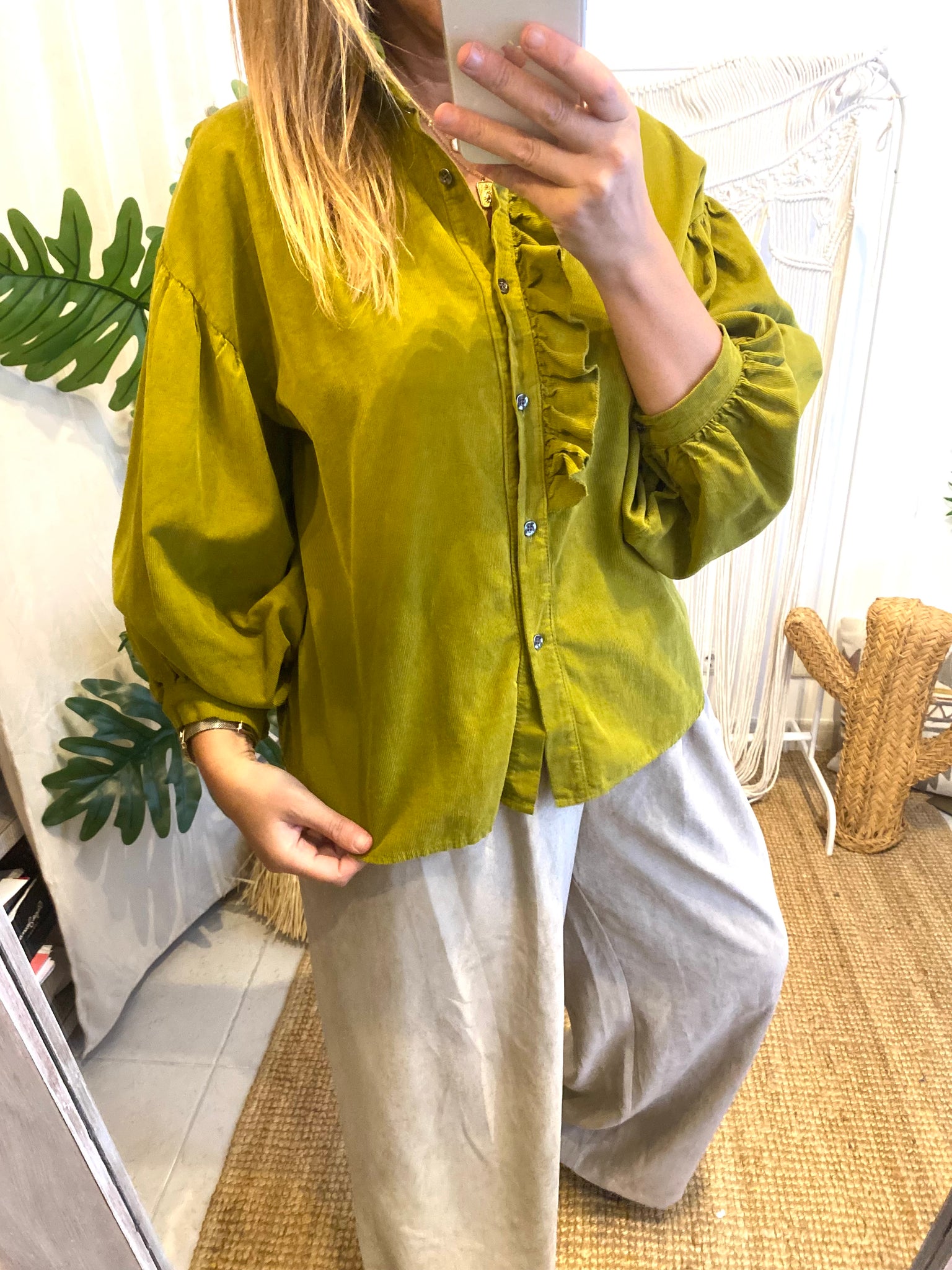 • Carregar imagem no visualizador da galeria, Camisa bombazina folhinho verde oliva