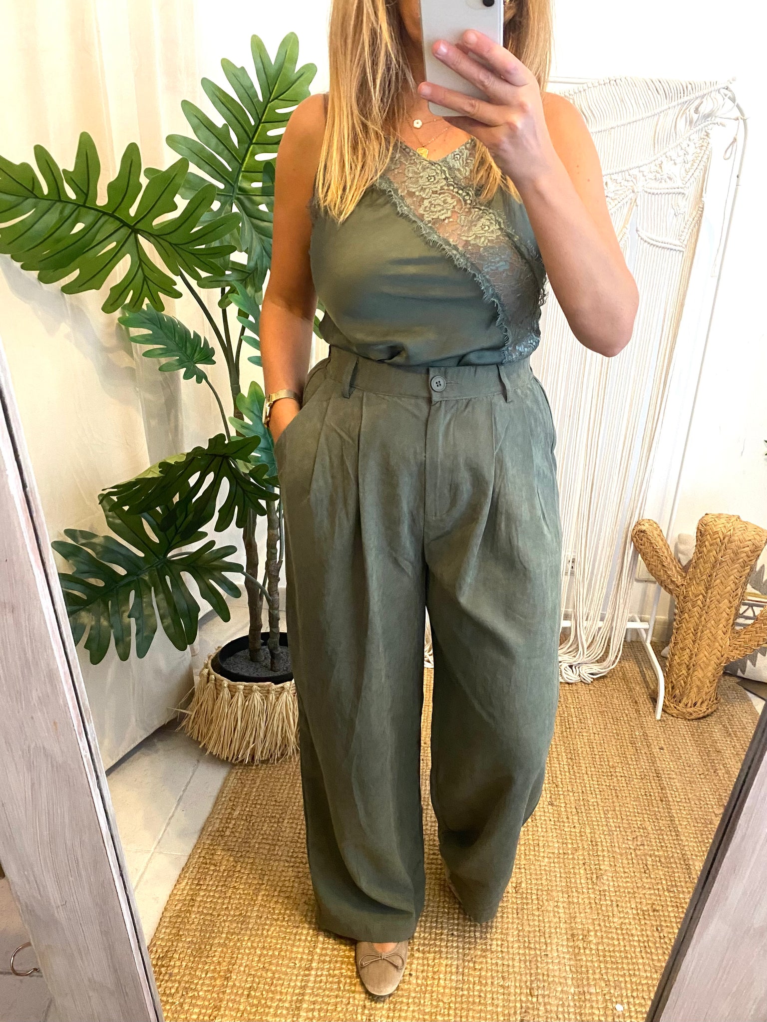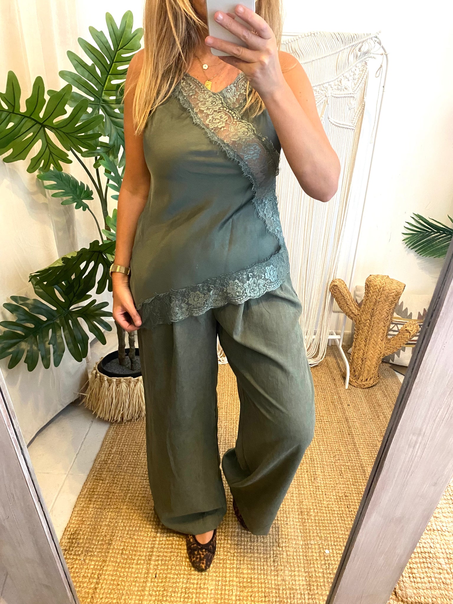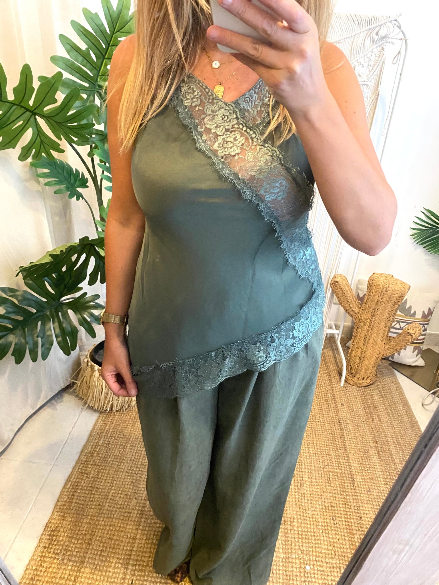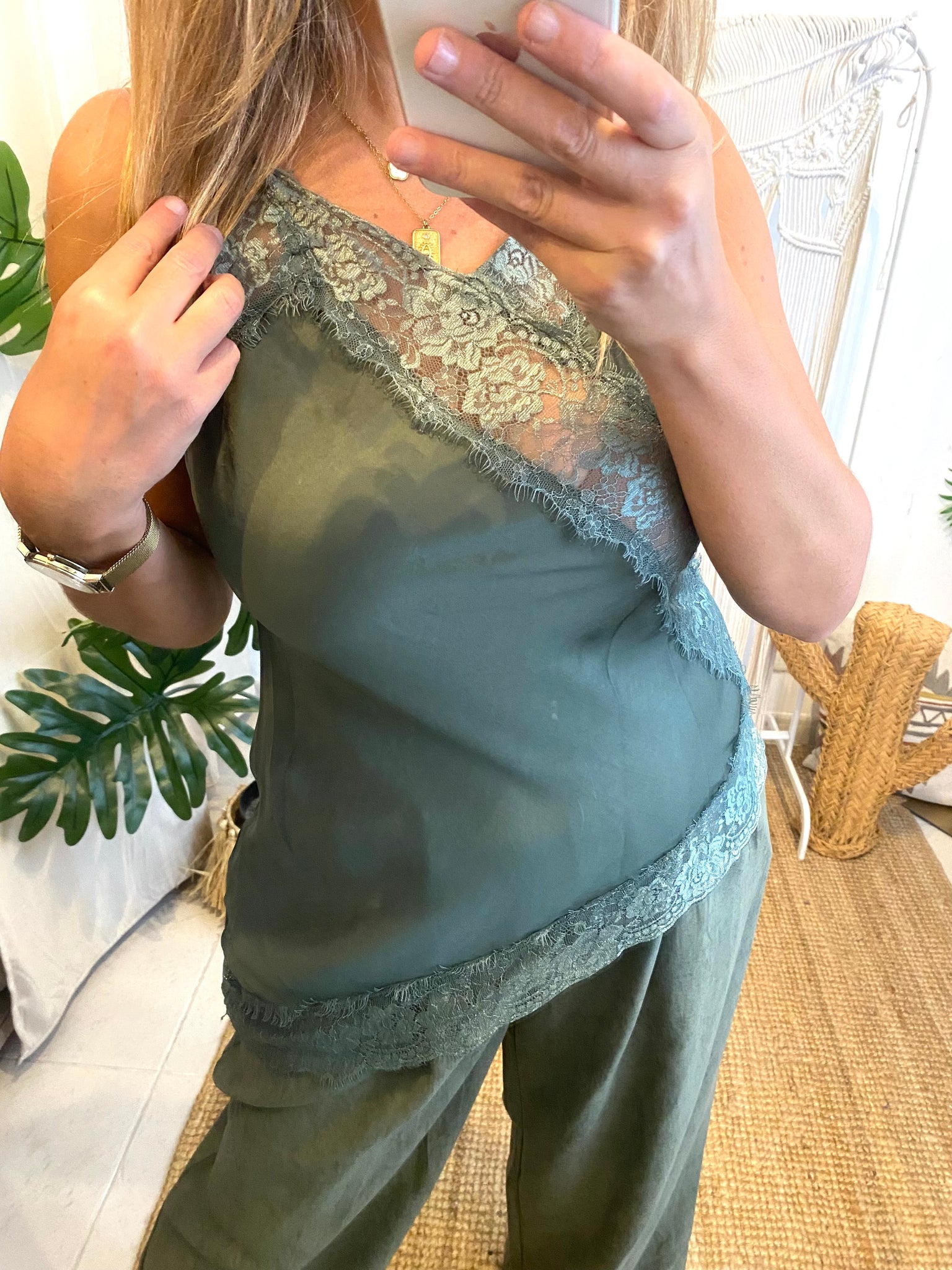 Top renda assimétrico verde
