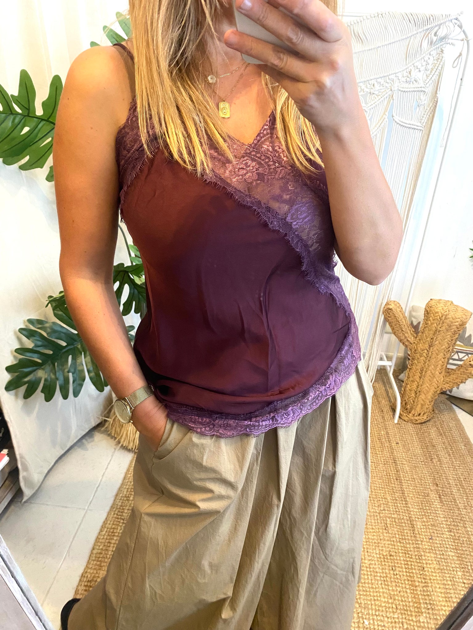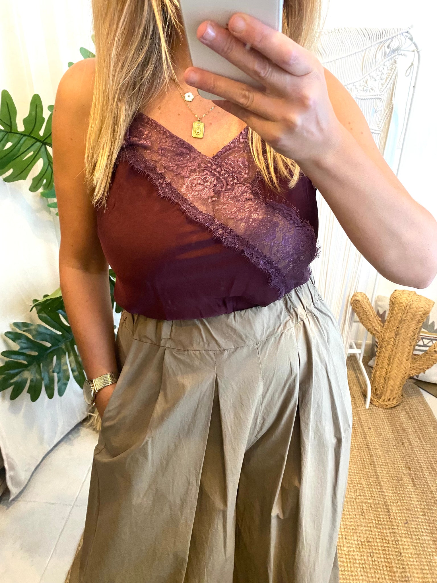 Top renda assimétrico bordeaux