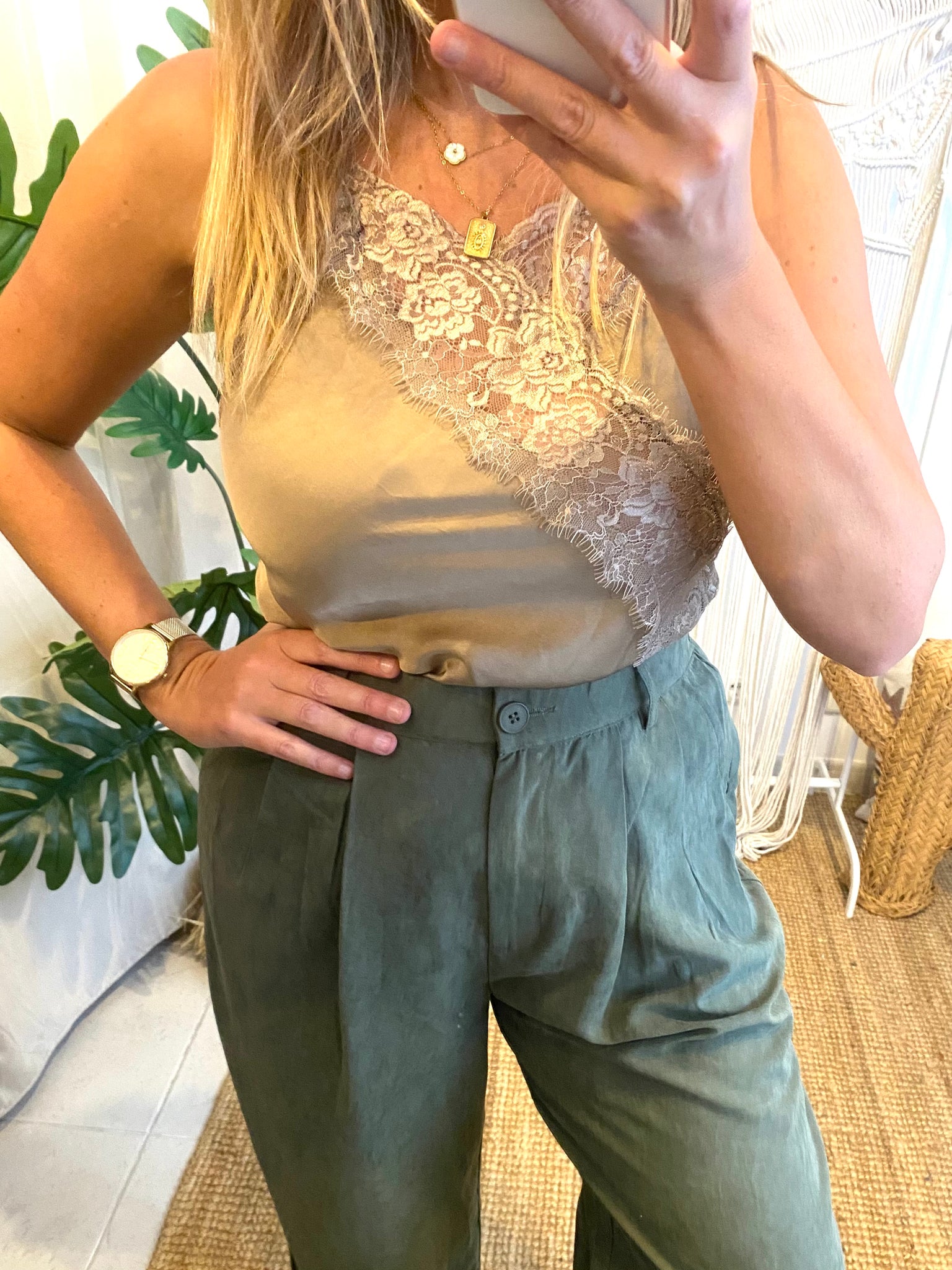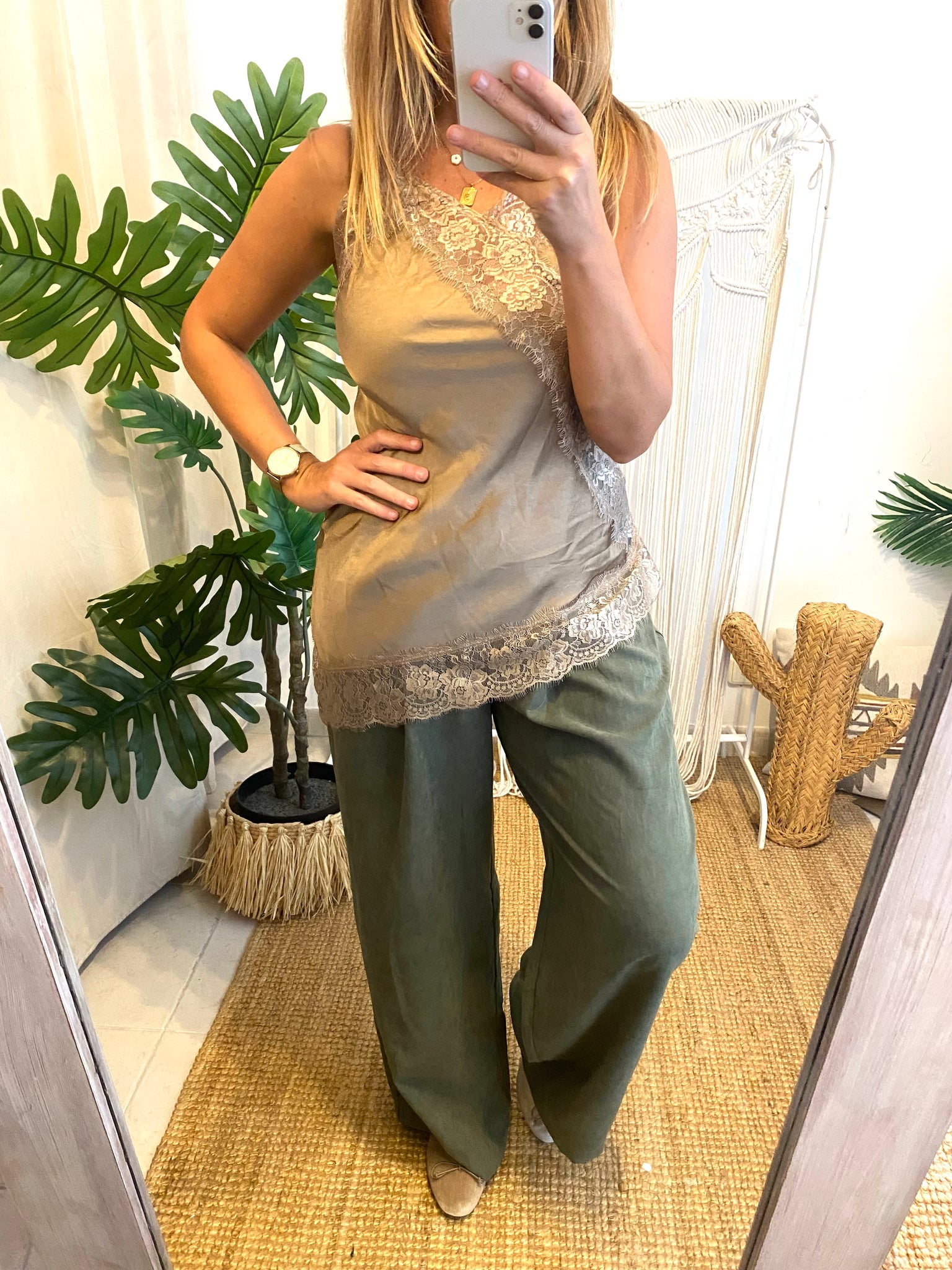 • Carregar imagem no visualizador da galeria, Top renda assimétrico camel